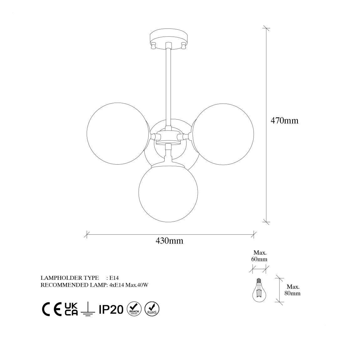15 cm läbimõõduga klaaskork hajutab valguse kaunilt, luues lummava väljapaneku, mis võlub teie külalisi. Lühtri suurus 43 x 43 x 47 cm teeb sellest täiusliku eseme igasse ruumi, lisades sellele suurejoonelisust ja luksust.