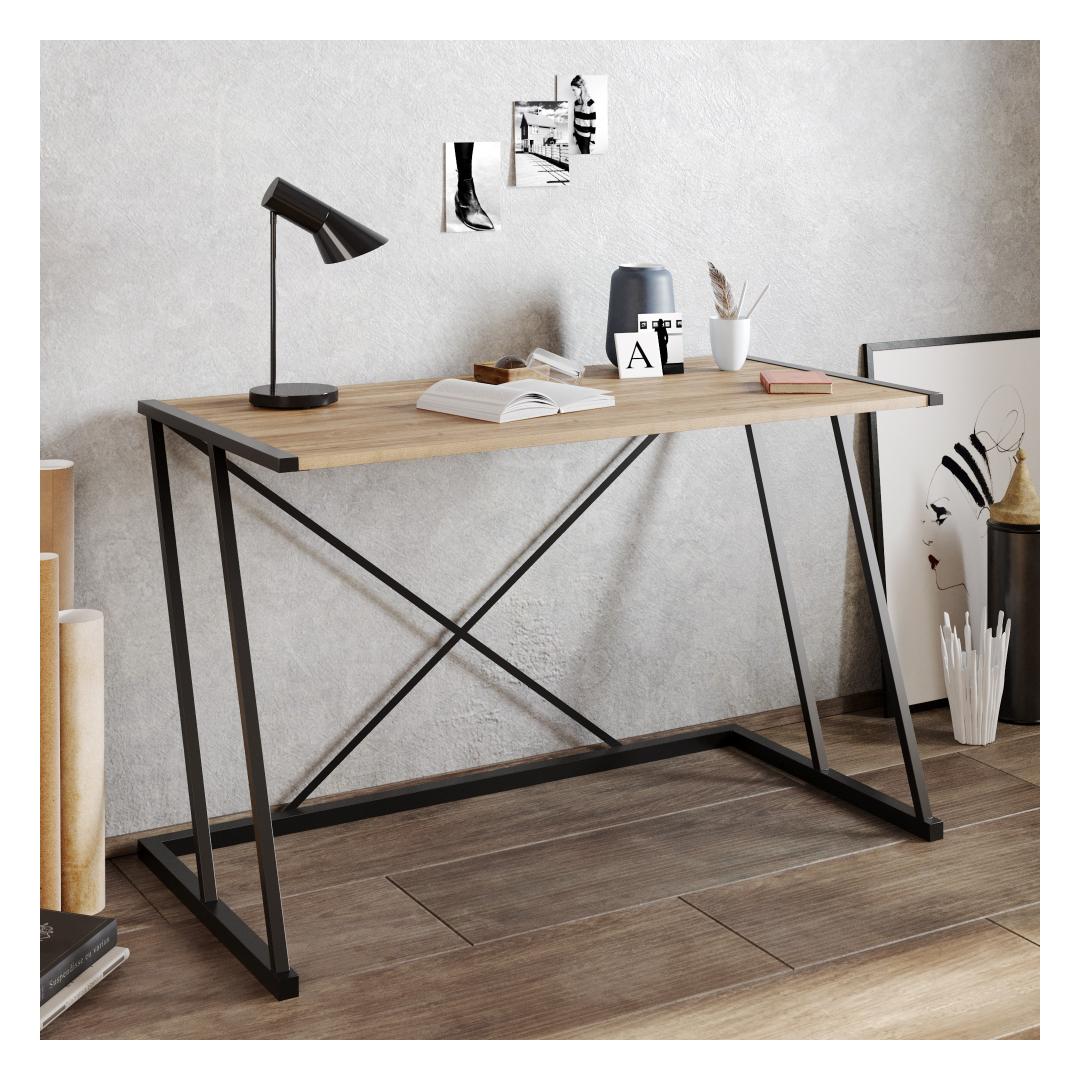Meie tööstuslik töölaud ei ole lihtsalt mööbliese, see on avaldus. Pähklipuu ja musta värvi kombinatsioon loob silmatorkava kontrasti, mis lisab elegantsi igasse ruumi. Stiilsed metalljalad tagavad stabiilsuse ja vastupidavuse, tagades, et teie kirjutuslaud peab vastu.