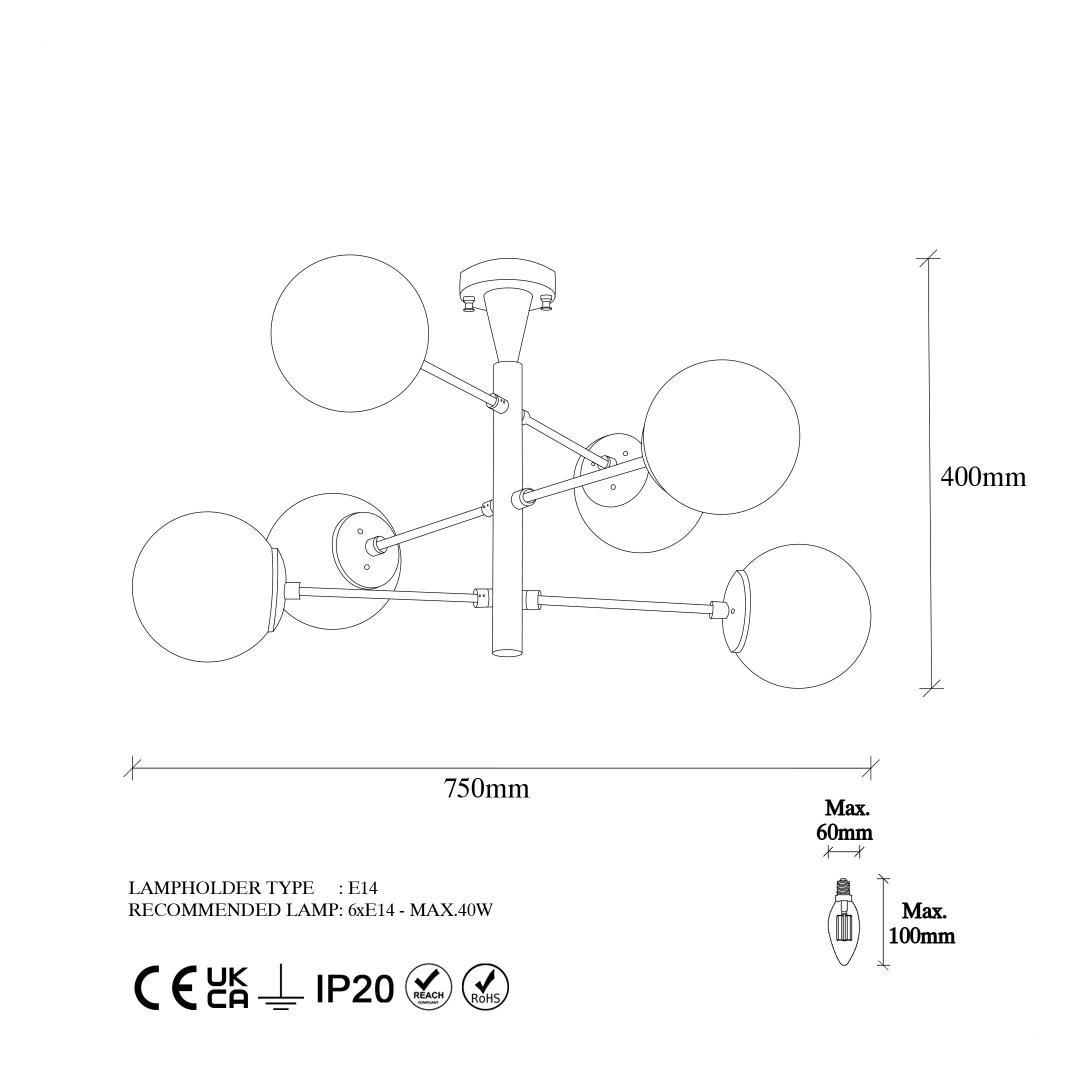 Socket Type: 6 x E 14 Max 40 W