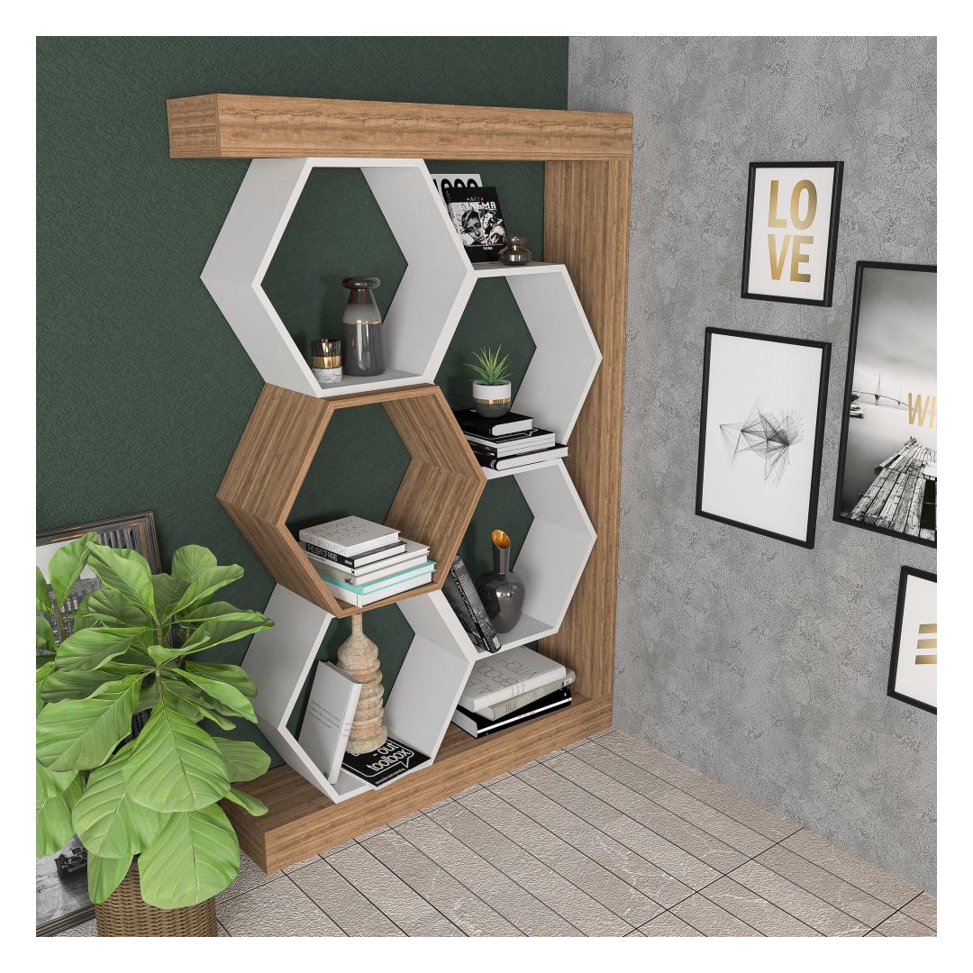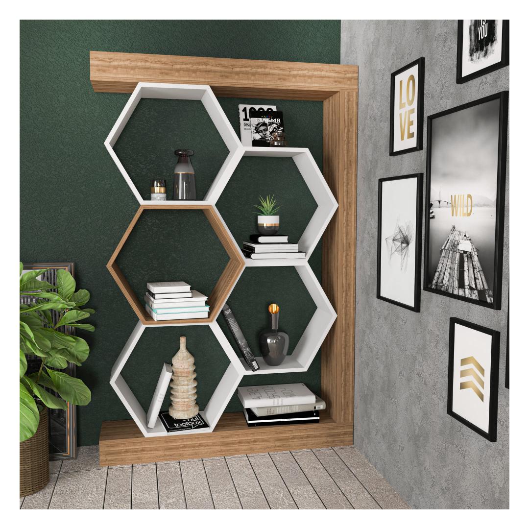 Raamaturiiul Artemis - Walnut, White