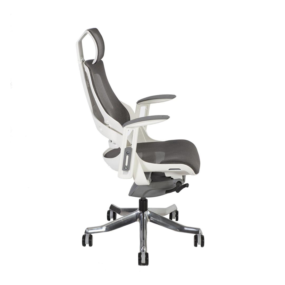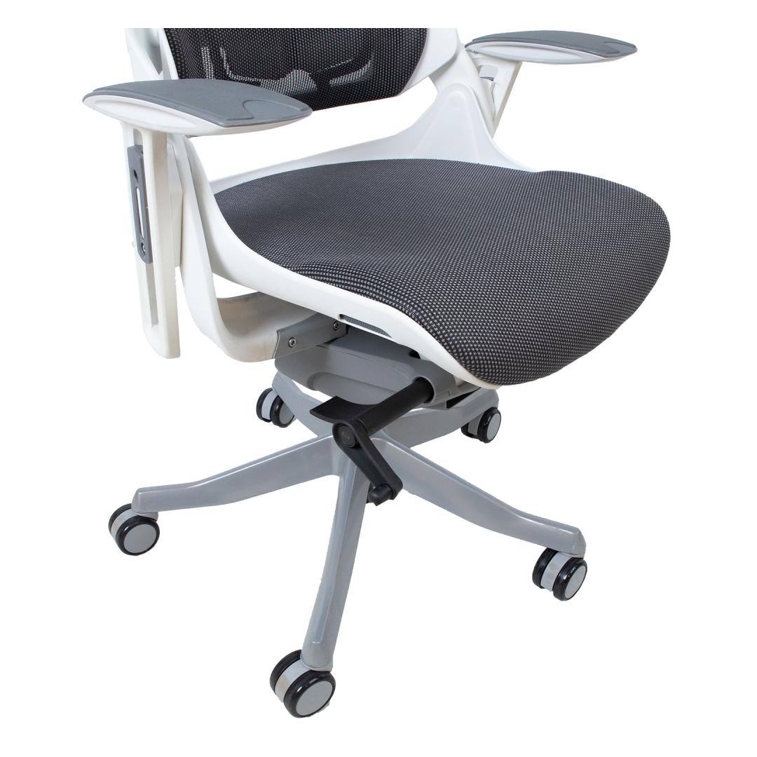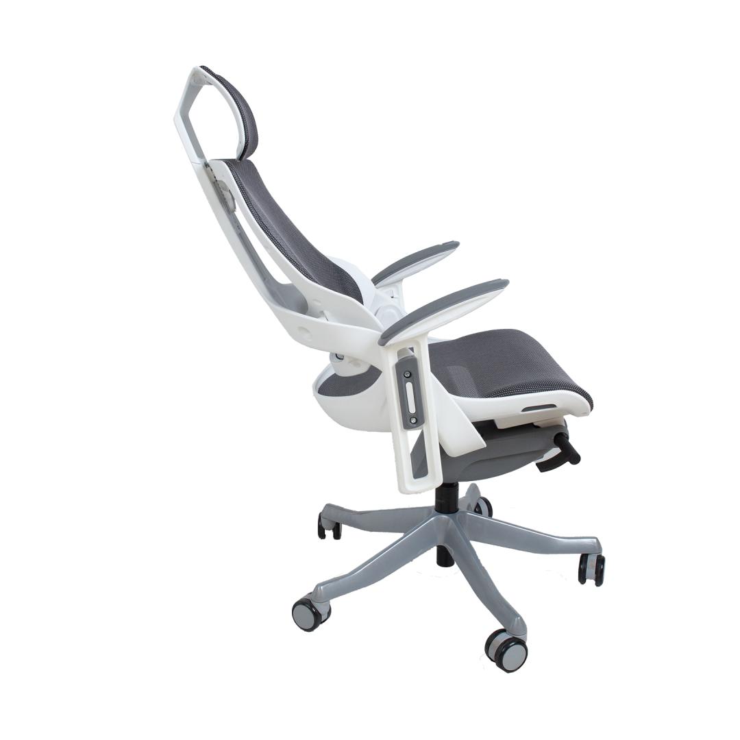 Töötool WAU hall/valge korpus. WAU toolis on ühendatud suurepärane ergonoomika ja sportlik stiil, pakkudes parimat tuge ja rahulolu terveks tööpäevaks. Tooli väliskorpus on valmistatud valgest plastikust ja raami sisemised osad on vormitud hallist plastikust (100% PP taaskasutatav). Seljatoe plastikraam on tugevdatud fiiberkiuga. Tooli iste ja seljatugi on kaetud halli võrkkangaga (76% polü-elastomeer, 24% polüester), Martindale'i väärtus 100 000. Võrkkanga koostisesse kuuluv elastomeer filamentkiud tagab materjali kõrge tõmbetugevuse ja väga hea vastupidavuse. Toolil on sünkroonmehhanism. Seljatoe kaldenurk on lukustatav ja kaldepinge tugevus reguleeritav. Istme kõrgus on reguleeritav gaasamordi abil. Pea- ja seljatoe kõrgus on reguleeritav. Toolil on reguleeritav nimmetugi. Käetugede katted on valmistatud hallist elastomeer termoplastikust. Käetugede kõrgus ja pöördenurk on reguleeritavad. Tooli 5-haruline jalarist on valmistatud valualumiiniumist ja viimistletud halli epoksiidpulbervärviga. Toolil on 60mm põrandat säästvad nailonrattad. Tooli üldmõõdud on 70x70xH112-129cm. Istme laius 47cm, istme sügavus 49cm, istme kõrgus 40-48cm. Kaalupiirang 120kg.