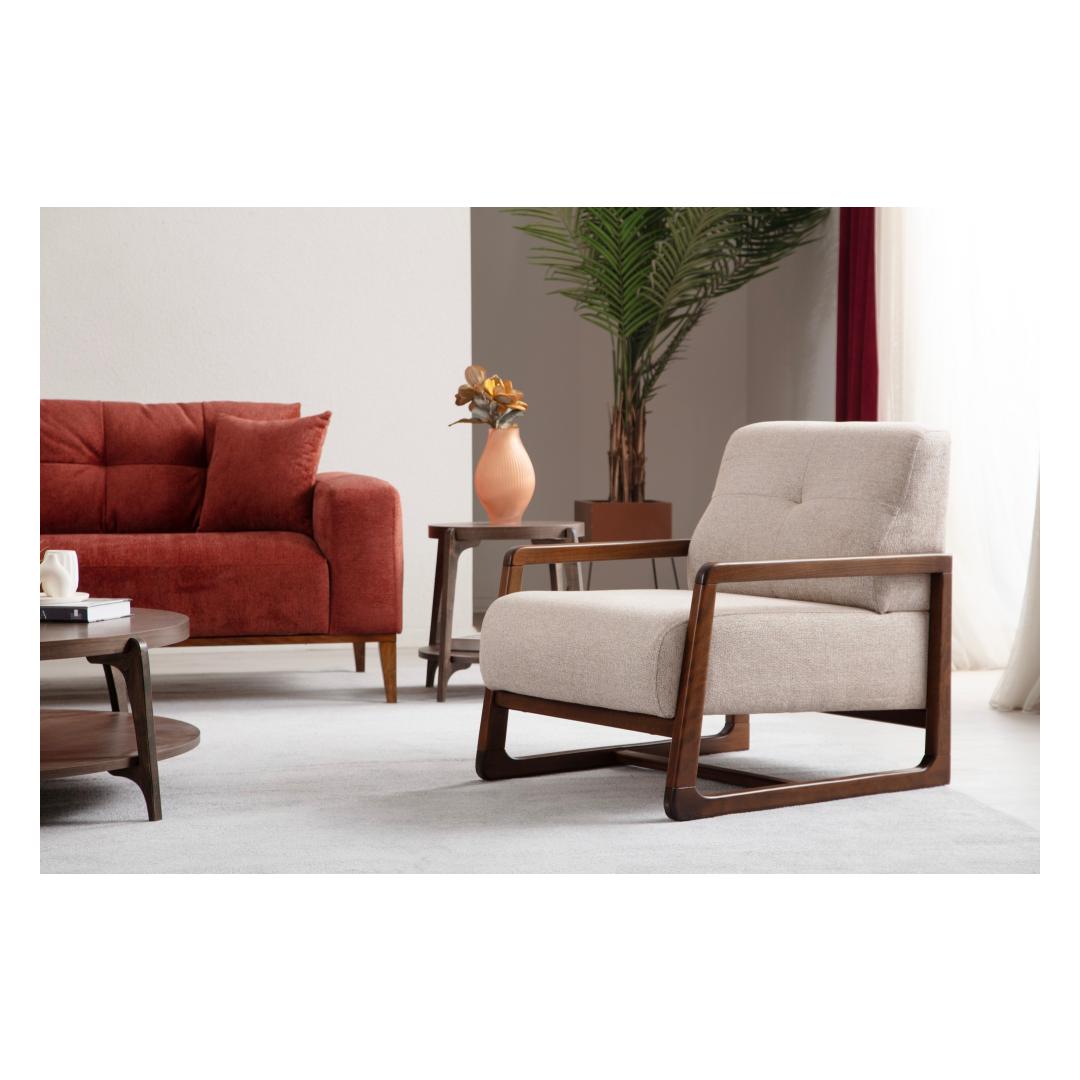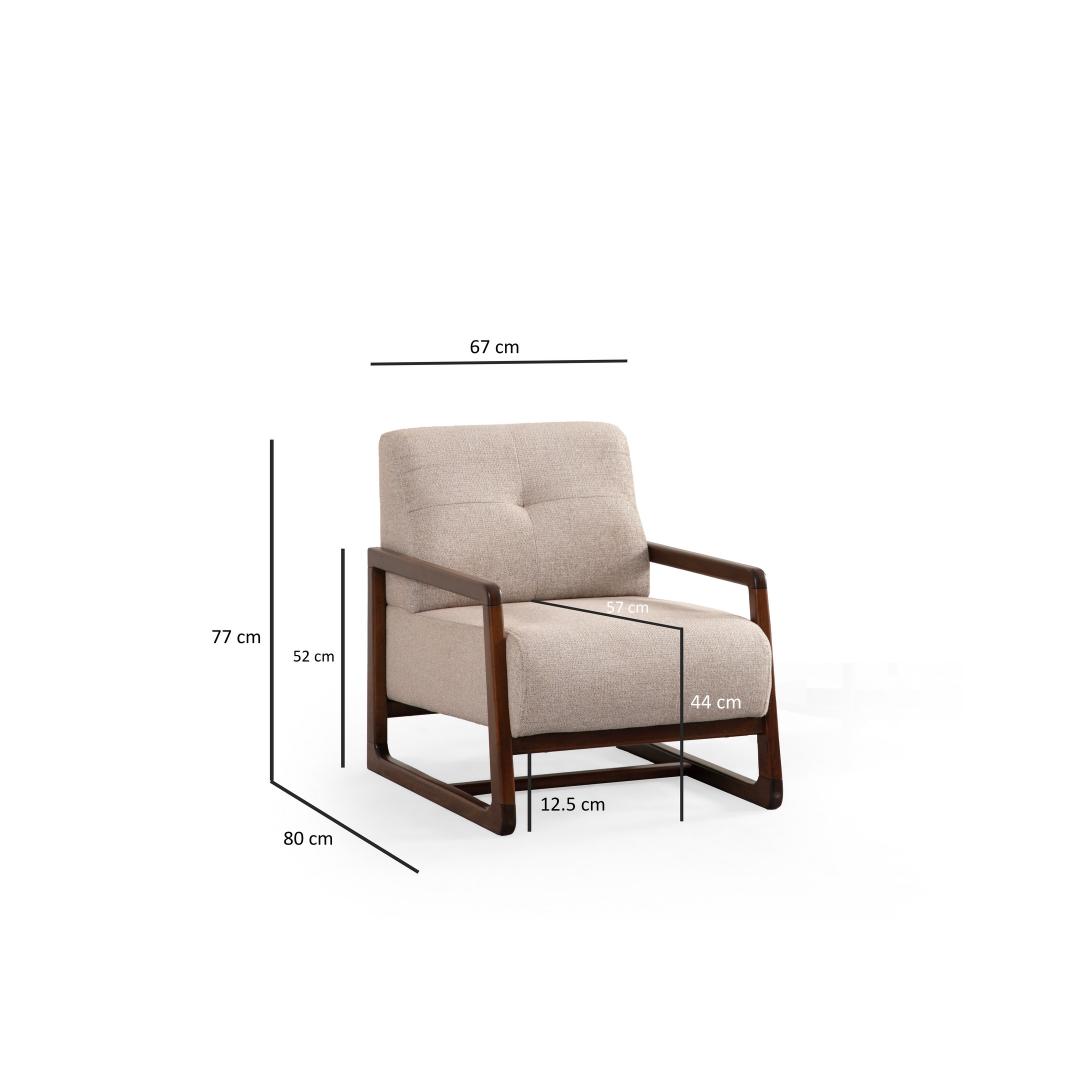 Muuda oma eluruum meie kauni Wing Chair'iga. See hämmastav tükk lisab sinu koju mitte ainult elegantsi, vaid pakub ka maksimaalset mugavust, mida sa väärid. Tooli kaunis beež värv sulandub vaevata igasse sisustusse, muutes selle mitmekülgseks ja ajatu lisandiks sinu mööblikollektsiooni.Luksuslik MugavusLangeta end pehme 28 DNS halli vahtkummist istmele ja tunne, kuidas kõik su mured sulavad. 24 DNS suledega seljatoe padja pakub ideaalset tuge seljale, võimaldades sul pärast pikka päeva lõõgastuda ja puhata. Kinnitatud istmepadja tagab, et sul on alati mugav koht puhkamiseks, samas kui kaasaskantav seljatoe padi saab sinu soovide järgi reguleerida.Kvaliteetne KäsitööValmistatud kvaliteetsest pöögipuust ja puitlaastplaadist, on see Wing Chair loodud kestma. Vastupidav konstruktsioon ja pähklipuidust jalad tagavad stabiilsuse ja tugevuse, nii et saad seda tooli nautida aastaid. 100% polüestrist kangas on mitte ainult pehme puudutusele, vaid ka lihtne puhastada, muutes hooldamise lihtsaks.Tõsta Oma RuumiOlgu see sinu elutoas, magamistoas või kodukontoris, see Wing Chair tõstab koheselt iga ruumi välimust. Sujuv disain ja klassikaline värv muudavad selle mitmekülgseks tükiks, mis täiendab igasugust stiili. Lisa oma koju natuke rafineeritust selle ajatu ja elegantse tooliga.Tehnilised Üksikasjad:Raam: Pöögipuu / PuitlaastplaatKangas: 100% PolüesterMõõtmed: 80 cm (Sügavus) x 67 cm (Laius) x 77 cm (Kõrgus)Istm kõrgus: 44 cmIstm sügavus: 57 cmJala kõrgus: 12.5 cmVaht: 28 DNS pehme hall vaht / 24 DNS suledegaKinnitatud istmepadja / kaasaskantav seljatoe padiKuivpuhastatav kangasJalad: Pähklipuidust jaladVärv: Beež Värv: Beige