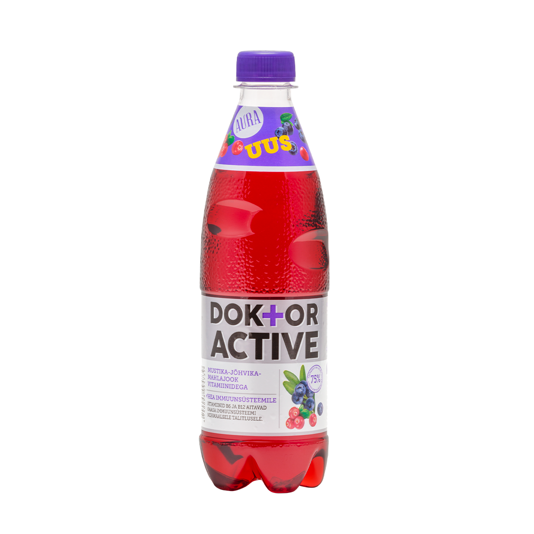Doktor Active’i mahlajoogid on valmistatud mahlastest ja küpsetest puuviljadest, rikastatud vitamiinidega, mis on head Sinu immuunsüsteemile. Uues mahlajoogis on kokku saanud meie metsade tõelised supermarjad – jõhvikad ja mustikad. Mõnusalt koduse marjamaitsega jook on suurepärane janukustutaja. 0,5 l toodet sisaldab 75% täiskasvanud inimesele soovitatavast päevasest B6– ja B12-vitamiini vajadusest. Vitamiinid B6 ja B12 aitavad kaasa immuunsüsteemi normaalsele talitlusele. Rikastatud joogi tarbimine ei asenda mitmekülgset ja tasakaalustatud toitumist ning tervislikku elustiili. KOOSTISOSAD: vesi, jõhvikamahl kontsentreeritud mahlast (10%), suhkur, mustikamahl kontsentreeritud mahlast (2%), happesuse regulaator – sidrunhape, porgandimahlakontsentraat, looduslikud lõhna- ja maitseained, vitamiinid (pantoteenhape, vitamiinid B6 ja B12, biotiin), säilitusained – kaaliumsorbaat, naatriumbensoaat.