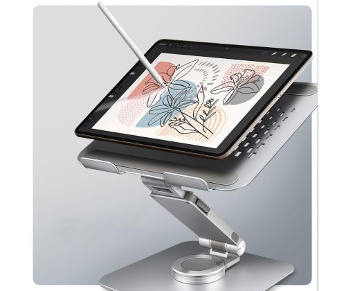 AXAGON STND-LR on vastupidav ja reguleeritav alus, millel on 360° pööramisvõimalus, topeltliigend ja pikendatav vars, pakkudes maksimaalset ergonoomikat sülearvuti või tahvelarvutiga töötamisel. Sobib seadmetele suurusega 10″ kuni 16″ ning aitab vähendada kaela- ja seljakoormust, tagades stabiilse ja mugava töökoha kodus, kontoris või liikvel olles.