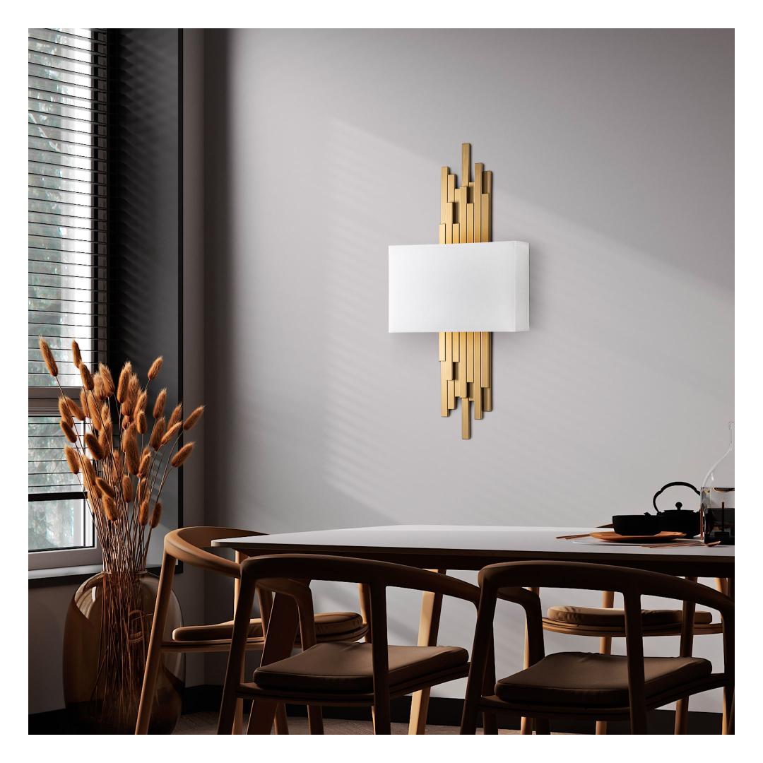 Valgustage oma ruumi elegantsi ja stiiliga meie hämmastava seinalambiga. See peen ese omab sujuvat metallkorpust ja luksuslikku kangast katet, luues rafineeritud ilme, mis tõstab esile iga toa teie kodus. Kuld- ja valge värvi kombinatsioon lisab teie sisustusele sära ja rafineeritust, muutes selle ideaalseks väljendusdetailiks teie elutoas, magamistoas või koridoris.
