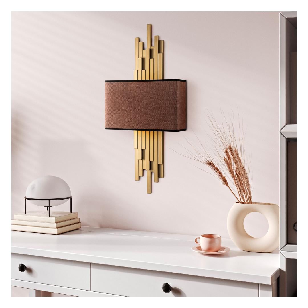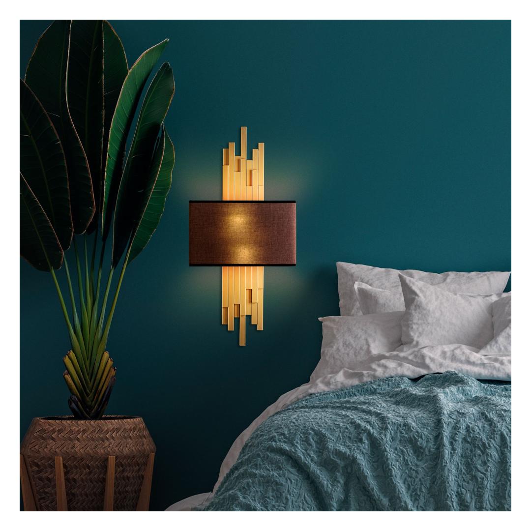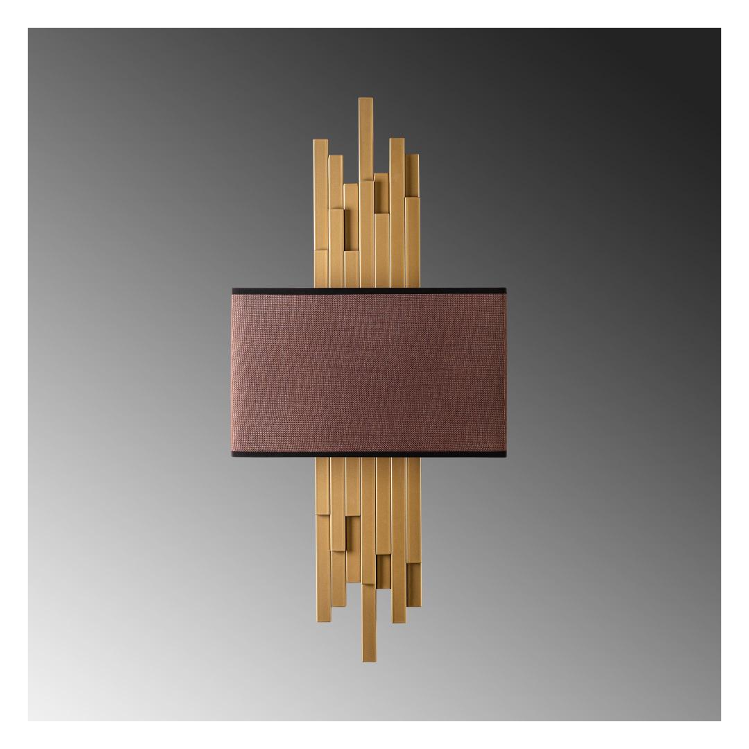 Valgustage oma ruumi meie kauni metall- ja kangaseinavalgustiga. See erakordne ese mitte ainult ei valgustata teie tuba, vaid lisab ka elegantsi ja rafineeritust teie sisustusele. Kuldse ja pruuni värvi kombinatsioon loob sooja ja kutsuva atmosfääri, mis sobib ideaalselt igasse teie kodu ruumi.
