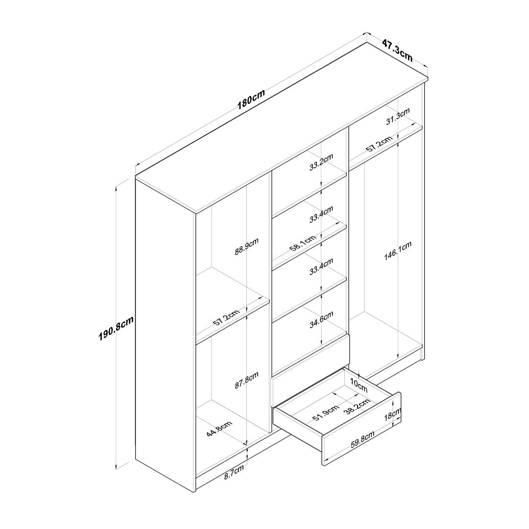 Meie riidekapp on valmistatud 100% melamiiniga kaetud puitlaastplaadist, mis on ehitatud kestma. 18 mm paksus tagab vastupidavuse ja tugevuse, pakkudes teile usaldusväärset hoiulahendust aastateks.