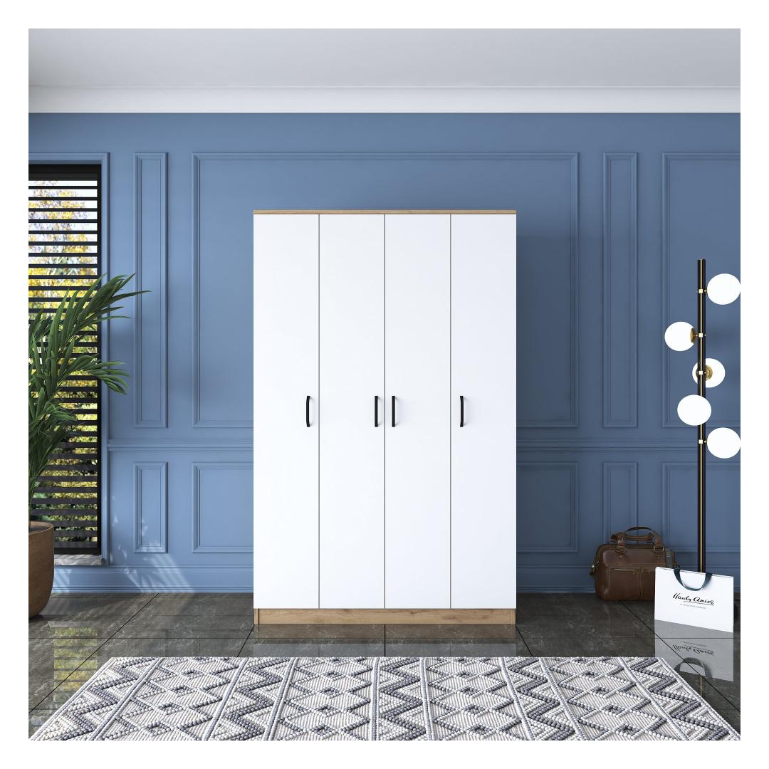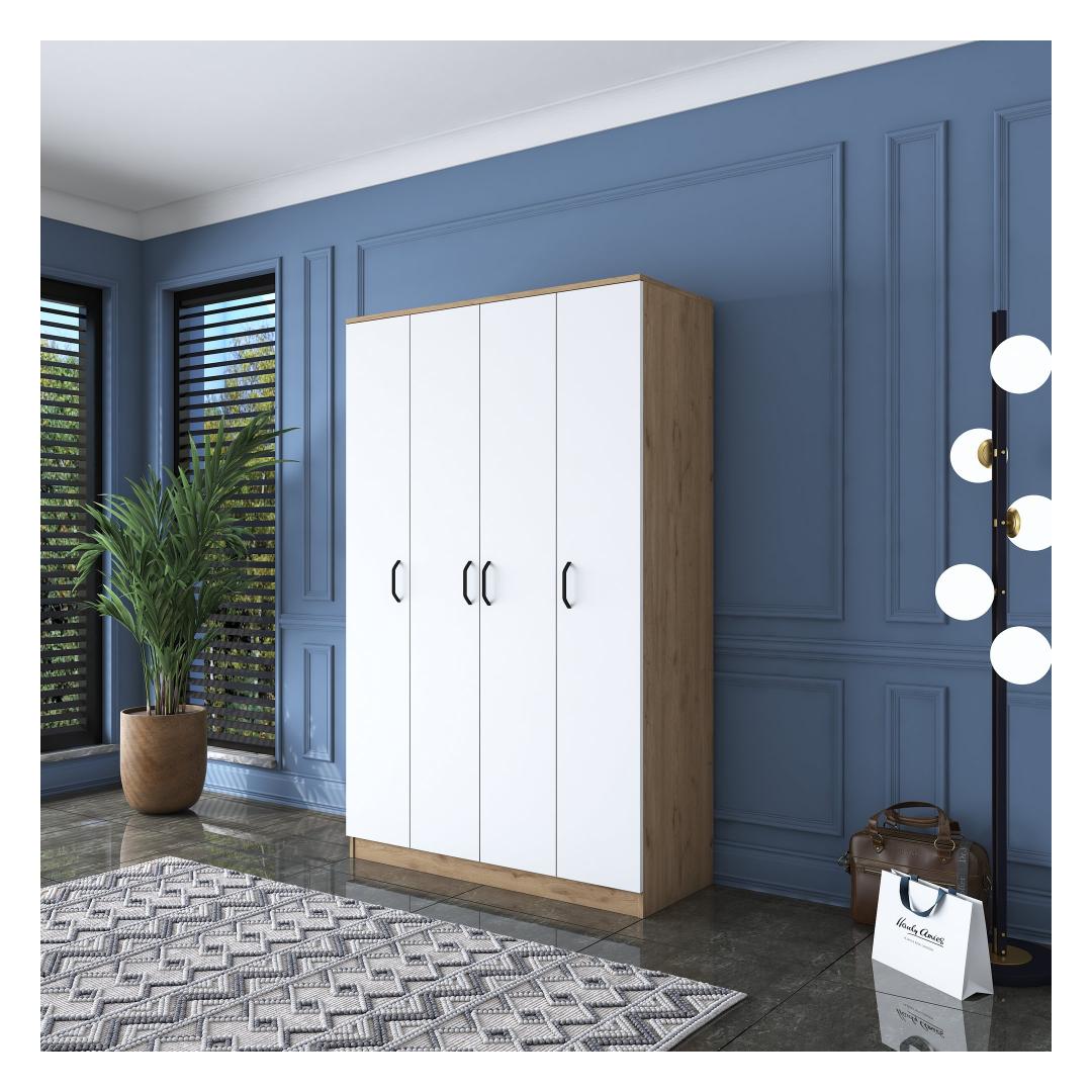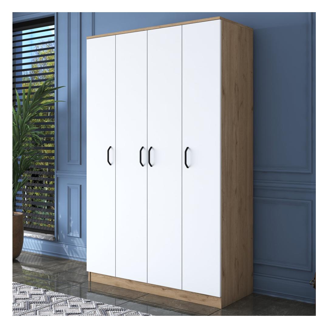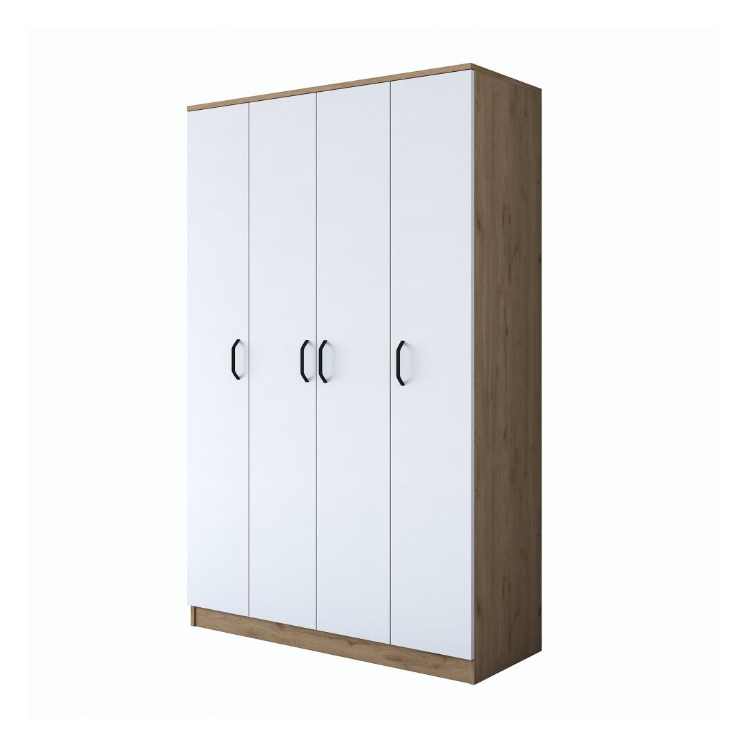 Pähklipuu ja valge värvi kombinatsioon annab sellele riidekapile ajatu ja rafineeritud välimuse. Kontrastsed toonid loovad visuaalselt atraktiivse eseme, mis täiendab vaevata iga magamistoa sisekujundust.
