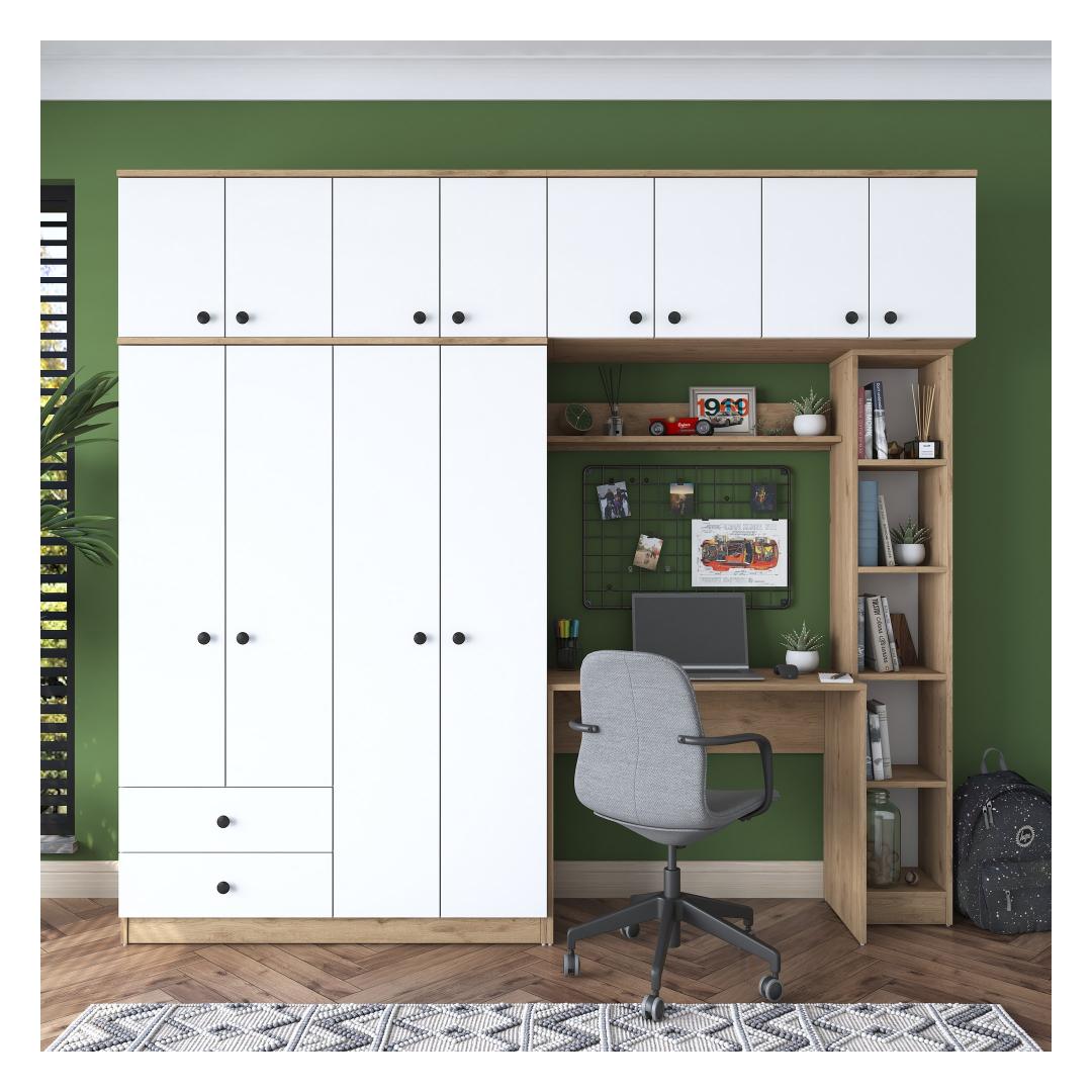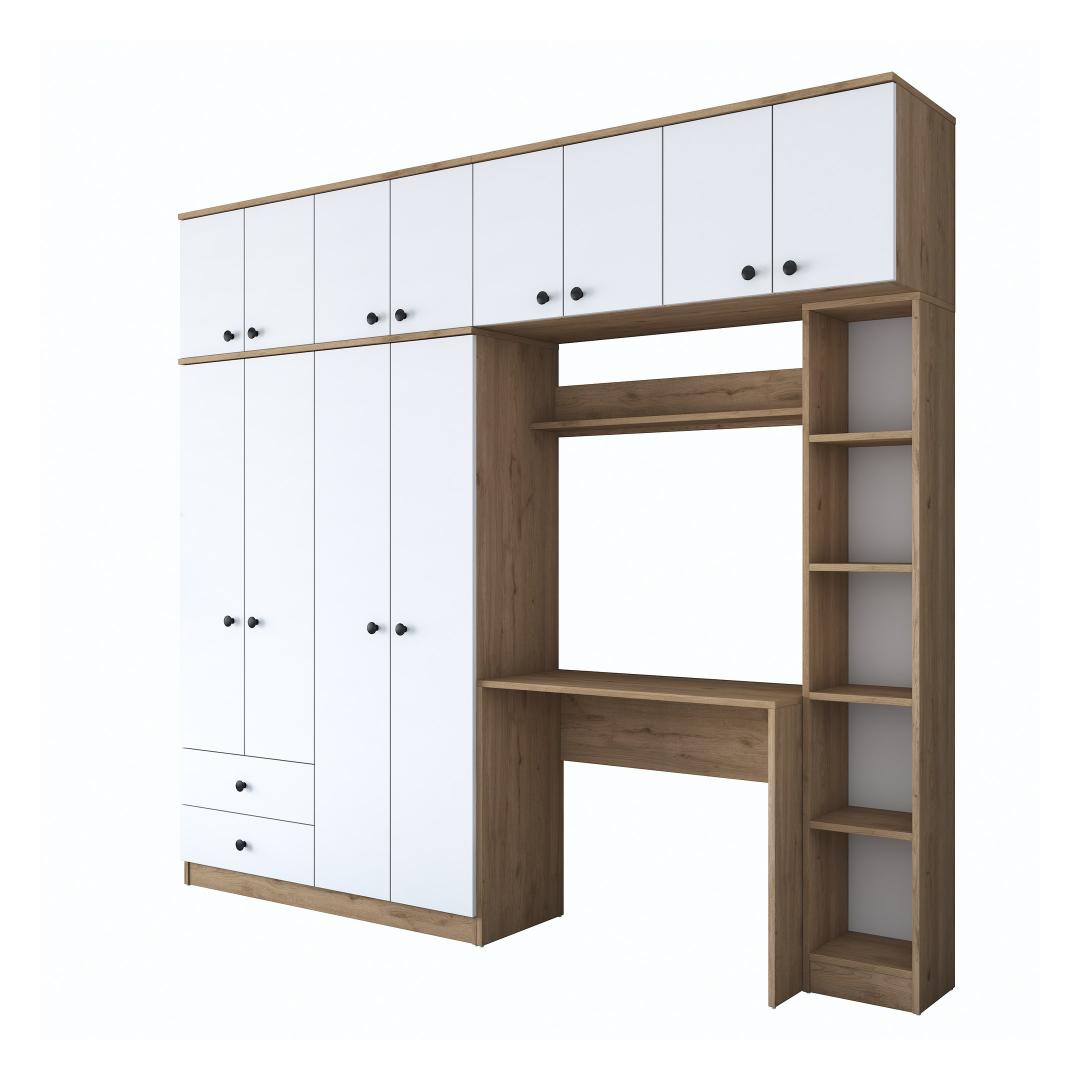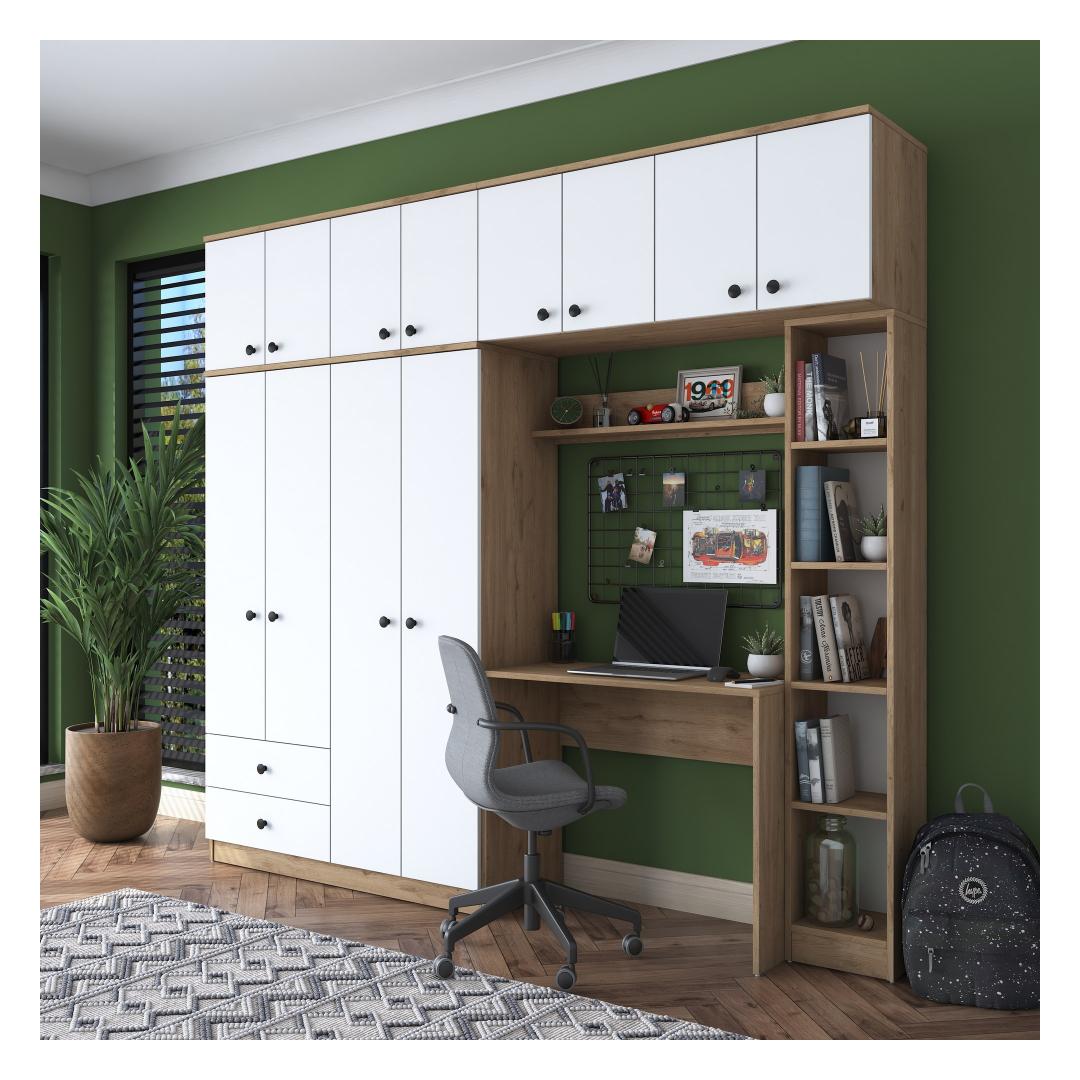 Muuda oma tööruum tootlikkuse ja stiili paradiisiks meie suurepärase tööruumi magamistoa komplektiga. See ülima täpsusega valmistatud ja täiuslikuks disainitud komplekt on kohustuslik kõigile, kes otsivad rahulikku ja inspireerivat keskkonda õppimiseks või töötamiseks. Tõstke oma õppimiskogemus ajatu elegantsigaSukelduge meie õppetoa magamistoa komplekti ilusse, mis ühendab sujuvalt funktsionaalsuse ja esteetika. Rikkaliku pähklipuu ja põlise valge värvi kombinatsioon loob visuaalselt uimastava kontrasti, mis tõstab koheselt teie õpperuumi atmosfääri. Elegantne ja kaasaegne disain lisab elegantsust, mistõttu sobib see ideaalselt igasse kaasaegsesse sisekujundusse.Võrratu vastupidavus ja kvaliteetSee 100% melamiiniga kaetud puitlaastplaadist valmistatud magamistoa komplekt on valmistatud kestma. 18 mm paksus tagab erakordse tugevuse ja vastupidavuse, mis võimaldab teil nautida selle ilu aastaid. Võite olla kindel, et see komplekt on loodud vastu pidama aja katsumusele, pakkudes teile usaldusväärset ja pikaajalist investeeringut. Rikkalik hoiuruum teie hädavajalike asjade jaoksÜtle hüvasti segastele õpperuumidele! meie õppetöökomplekt pakub rohkesti hoiuruumi, et hoida oma raamatud, kirjatarbed ja muud hädavajalikud asjad korrastatult ja käeulatuses. Avarad riiulid ja kapid pakuvad mugavaid hoiuvõimalusi, mis võimaldavad teil säilitada korrastatud ja tõhusat tööruumi. Tehnilised üksikasjad:Materjal: Materjal: Materjal: Materjal: Materjal: Materjal: Materjal: Materjal: materjal: 100% melamiiniga kaetud puitlaastplaatPaksus: 18 mmSuurus: Laius: 240 cm, kõrgus: 216. 8 cm, sügavus: 42. 5 cmVärv: pähkelpuu ja valgeElustage oma õppetuba meie õppetoa magamistoa komplektiga ja kogege täiuslik segu funktsionaalsusest, stiilist ja vastupidavusest. Tellige kohe ja viige oma õppetöö kogemus uutesse kõrgustesse! Värv: Walnut White