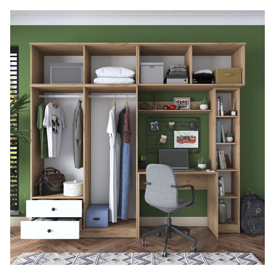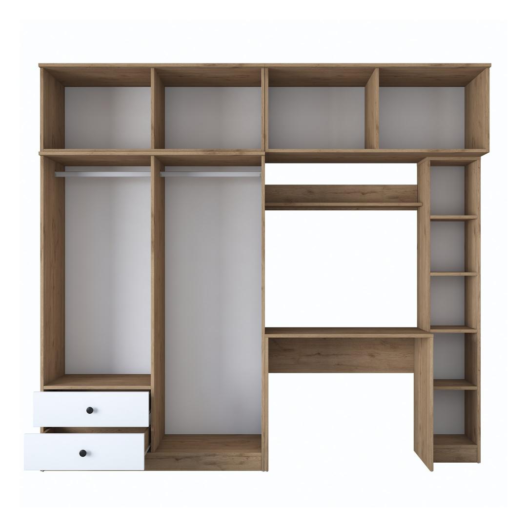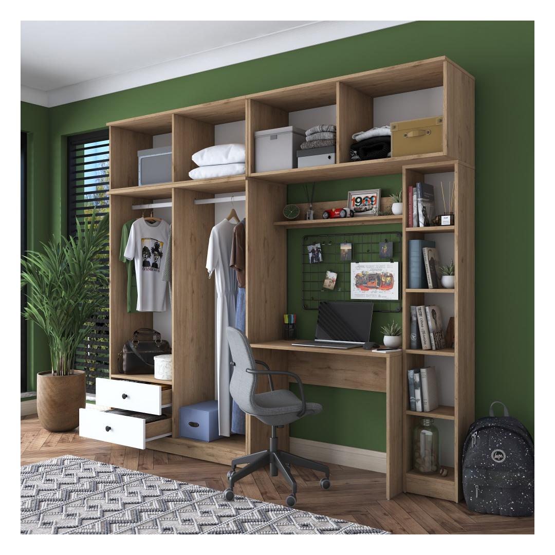 Muuda oma tööruum tootlikkuse ja stiili paradiisiks meie suurepärase tööruumi magamistoa komplektiga. See ülima täpsusega valmistatud ja täiuslikuks disainitud komplekt on kohustuslik kõigile, kes otsivad rahulikku ja inspireerivat keskkonda õppimiseks või töötamiseks. Tõstke oma õppimiskogemus ajatu elegantsigaSukelduge meie õppetoa magamistoa komplekti ilusse, mis ühendab sujuvalt funktsionaalsuse ja esteetika. Rikkaliku pähklipuu ja põlise valge värvi kombinatsioon loob visuaalselt uimastava kontrasti, mis tõstab koheselt teie õpperuumi atmosfääri. Elegantne ja kaasaegne disain lisab elegantsust, mistõttu sobib see ideaalselt igasse kaasaegsesse sisekujundusse.Võrratu vastupidavus ja kvaliteetSee 100% melamiiniga kaetud puitlaastplaadist valmistatud magamistoa komplekt on valmistatud kestma. 18 mm paksus tagab erakordse tugevuse ja vastupidavuse, mis võimaldab teil nautida selle ilu aastaid. Võite olla kindel, et see komplekt on loodud vastu pidama aja katsumusele, pakkudes teile usaldusväärset ja pikaajalist investeeringut. Rikkalik hoiuruum teie hädavajalike asjade jaoksÜtle hüvasti segastele õpperuumidele! meie õppetöökomplekt pakub rohkesti hoiuruumi, et hoida oma raamatud, kirjatarbed ja muud hädavajalikud asjad korrastatult ja käeulatuses. Avarad riiulid ja kapid pakuvad mugavaid hoiuvõimalusi, mis võimaldavad teil säilitada korrastatud ja tõhusat tööruumi. Tehnilised üksikasjad:Materjal: Materjal: Materjal: Materjal: Materjal: Materjal: Materjal: Materjal: materjal: 100% melamiiniga kaetud puitlaastplaatPaksus: 18 mmSuurus: Laius: 240 cm, kõrgus: 216. 8 cm, sügavus: 42. 5 cmVärv: pähkelpuu ja valgeElustage oma õppetuba meie õppetoa magamistoa komplektiga ja kogege täiuslik segu funktsionaalsusest, stiilist ja vastupidavusest. Tellige kohe ja viige oma õppetöö kogemus uutesse kõrgustesse! Värv: Walnut White