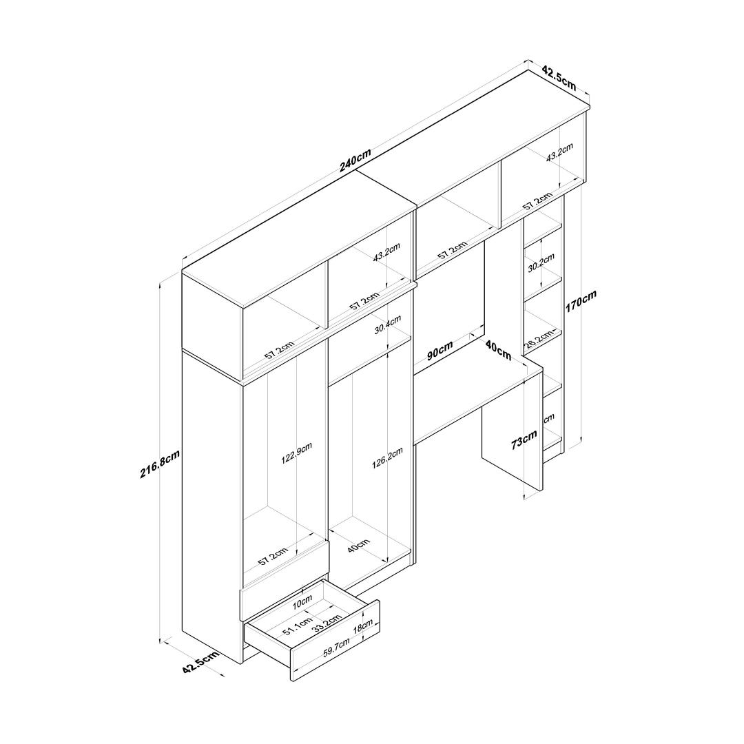 Size: Width: 240 cm Height: 216,8 cm Depth: 42,5 cm