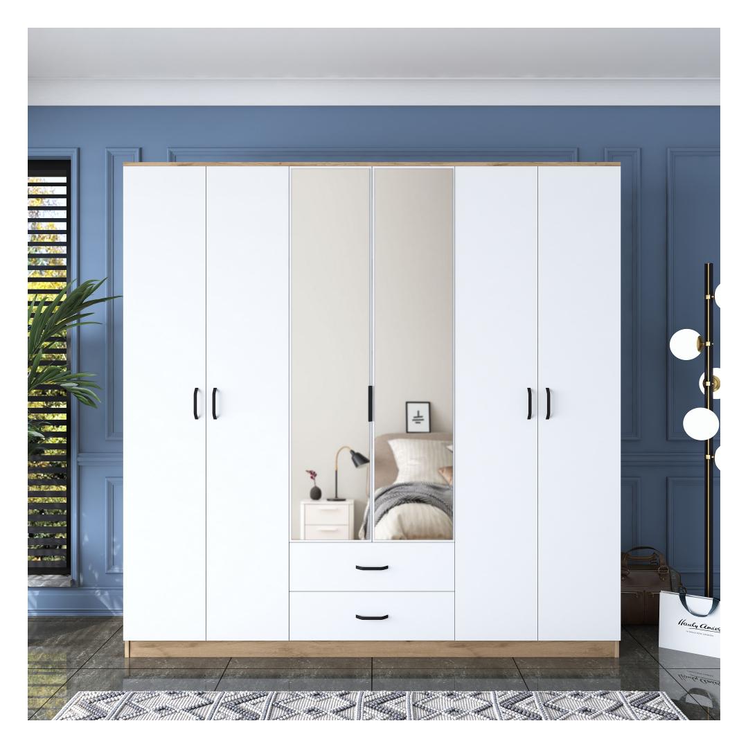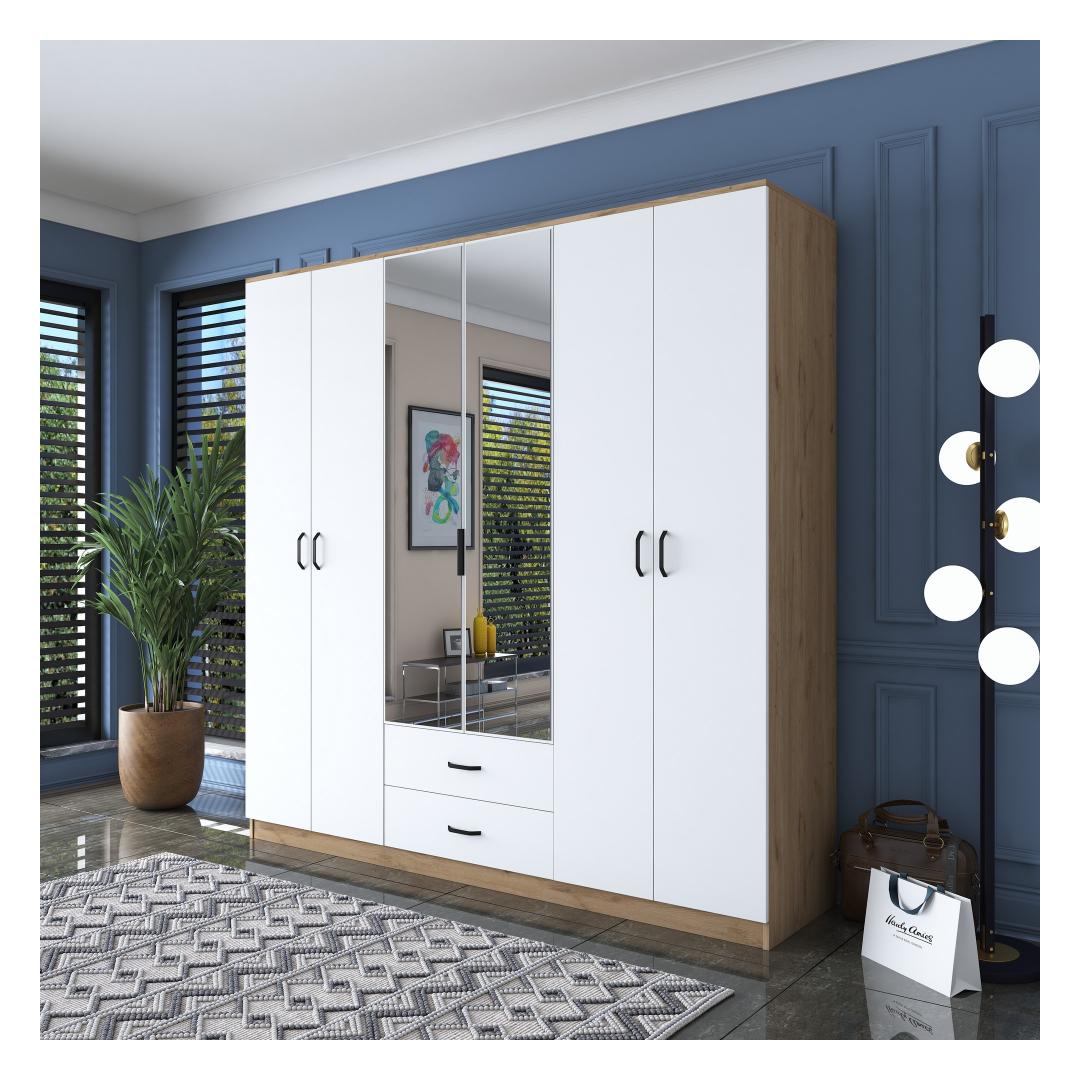 Looge oma magamistoas rahulikku õhkkonda meie uimastava pähklipuust ja valge riidekapiga. See peen mööblitükk on disainitud nii, et see mitte ainult ei tõsta teie ruumi esteetilist atraktiivsust, vaid pakub ka piisavalt ruumi kõigile teie asjadele.