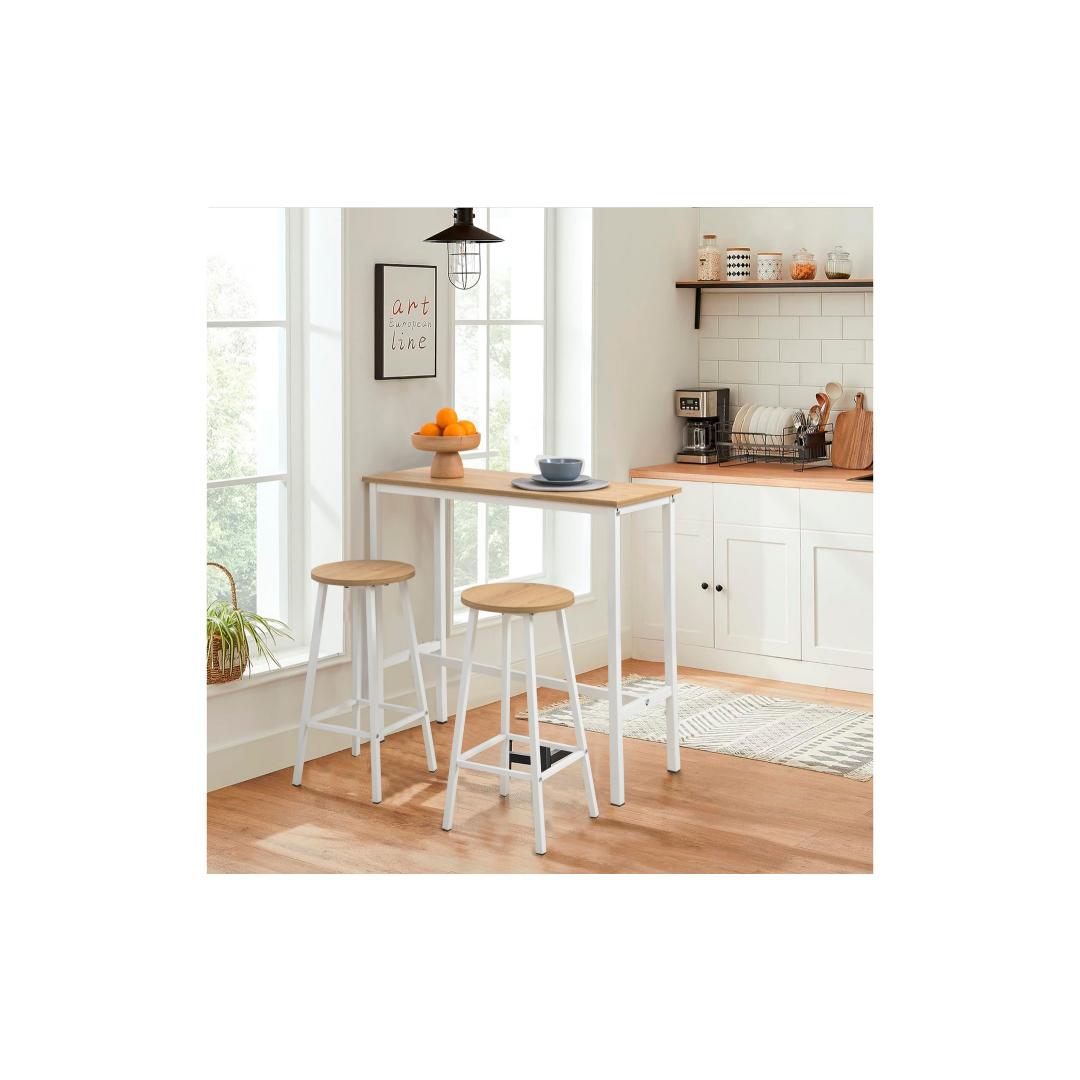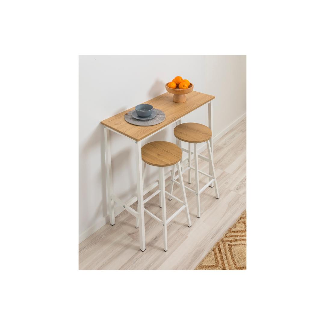 Muuda oma eluruum meie suurepärase baarilauaga, mis on valmistatud 100% puitlaastplaadist ja tugevast metallraamist. Stiilne disain ja kaasaegne valge värv tõstavad koheselt iga ruumi välimust, luues šiki ja rafineeritud atmosfääri, mis meeldib teile ja teie külalistele. Tõstke oma ruumiLisage oma koju elegantsi meie stiilse baarilauaga, mis sobib ideaalselt meelelahutuseks või juhusliku söögi nautimiseks. Puhtad jooned ja minimalistlik disain muudavad selle mitmekülgseks esemeks, mis sobib igasse sisustusstiili, alates kaasaegsest kuni traditsioonilise sisekujundamiseni. Kestev ja funktsionaalneKvaliteetsest puitlaastplaadist ja metallraamist valmistatud baarilaud on ehitatud kestma. Avar lauaplaat pakub palju ruumi jookide, suupistete või dekoratsiooni jaoks, samas kui tugevad jalad tagavad stabiilsuse ja toe aastateks. Lihtsalt kokkupandavMeie baarilaua on lihtne kokku panna, nii et saate seda kohe nautima hakata. Järgige lihtsalt kaasasolevaid juhiseid ja teil on ilus ja funktsionaalne mööblitükk mõne minutiga kasutusvalmis. Tehnilised üksikasjad:Materjal: materjal: 100% puitlaastplaat, 100% metallraamMõõdud: Laius 100 cm, kõrgus 90 cm, sügavus 40 cm.Värv: valge Värv: White