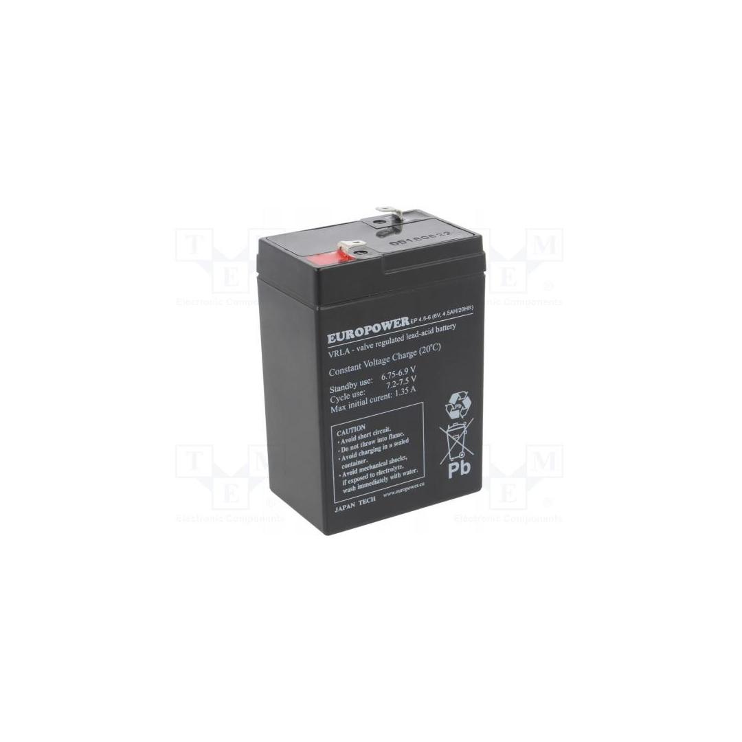 BATTERY 6V 4.5AH VRLA/EP4.5-6 EUROPOWER EMU