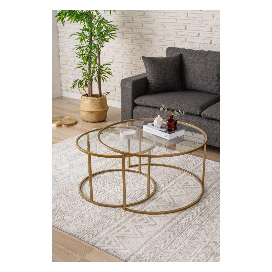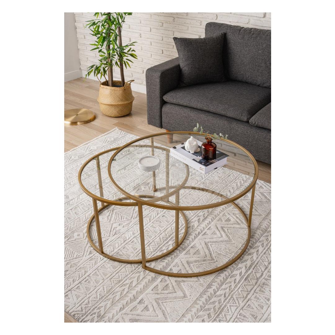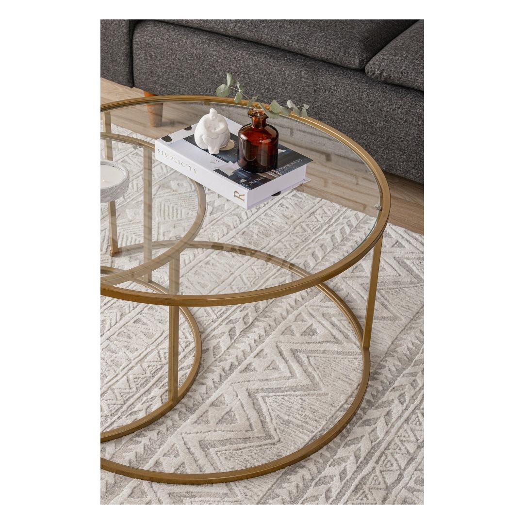 Lisa oma elutuppa natuke rafineeritust selle kauni kohvilaudaga. Kuldse ja läbipaistva klaasi kombinatsioon loob luksusliku ilme, mis muljet avaldab sinu külalistele ja muudab ruumi kutsuvamaks.