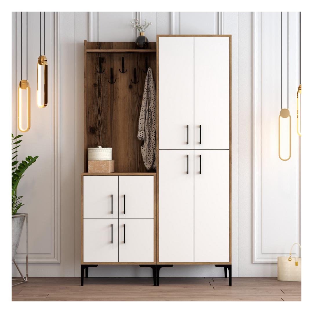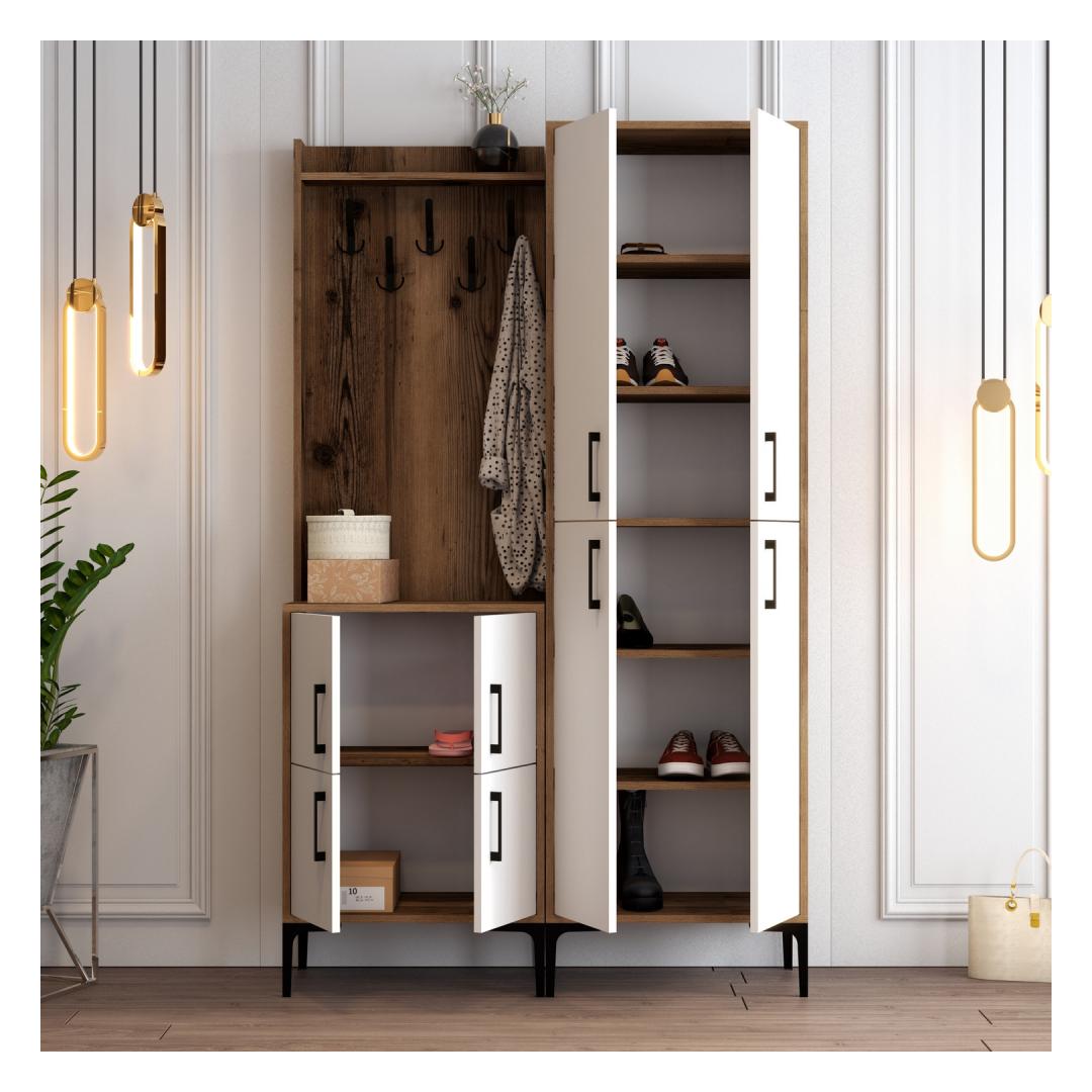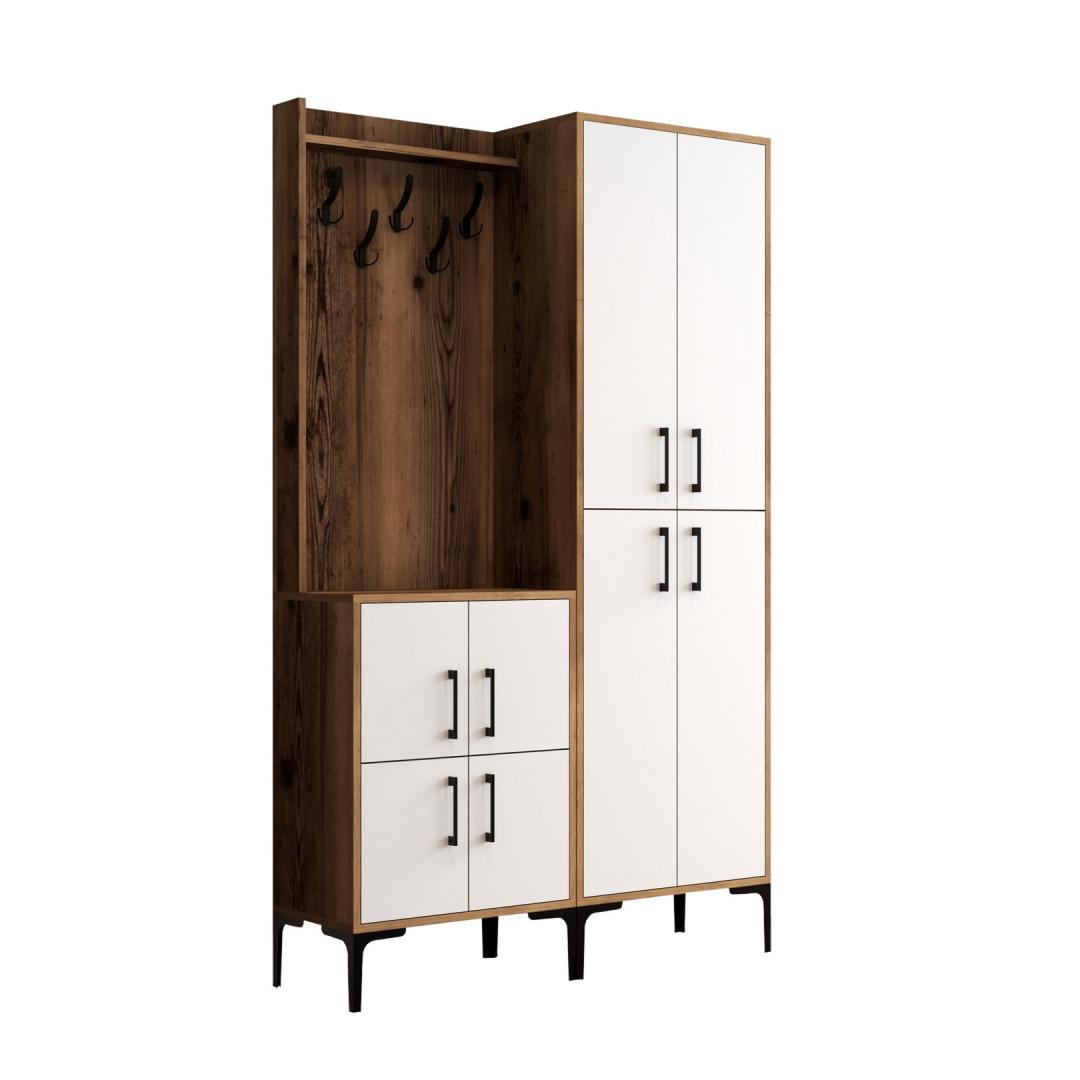 Looge stiilne ja funktsionaalne sissepääsutee meie saali stendigaMuutke oma esikusse sisenemise ruum sõbralikuks ja organiseeritud ruumiks meie esiku stendiga. Selles uimastavas esemes on ühendatud stiil ja funktsionaalsus, mis muudab selle ideaalseks täienduseks igasse koju. Täiendada oma sissepääsuteed stiilseltOma elegantse disaini ja tööstusliku kontseptsiooniga tõstab meie esiku stendi koheselt teie esiku stiili. Pähklipuu ja valge värvi kombinatsioon loob moodsa ja rafineeritud välimuse, mis avaldab külalistele muljet.Püsige organiseeritult ja rohkete panipaikadegaHüvasti segadusega esikusse! meie esiku riiulitel on palju riiuleid, mis pakuvad piisavalt ruumi mantlite, mütside, kottide ja muude oluliste asjade hoidmiseks. Riputatav mantlihoidja võimaldab teil oma mantlid korralikult üles riputada, hoides need kortsuvabana ja kergesti ligipääsetavana. Kindel ja tugev konstruktsioon100% melamiiniga kaetud puitlaastplaadist valmistatud saalihoidja on ehitatud kestma. 18 mm paksus tagab vastupidavuse ja stabiilsuse, samas kui metallist jalg ja plastist käepide lisavad elegantsi. Metallist riputuskang annab täiendavat tugevust ja tuge. Monitoorne ja ruumi säästev disainMeie saalihoidja, mille laius on 120 cm, kõrgus 200 cm ja sügavus 35 cm, on disainitud nii, et see sobiks ideaalselt igasse sissepääsukorrale. Jalgade kõrgus 17cm võimaldab statiivi all hõlpsasti puhastada. Lisaks saab seda kinnitada seinale, säästes väärtuslikku põrandapinda. Tehnilised üksikasjad:Tootetüüp: Toode on mõeldud kasutamiseks, kui see ei ole vajalik, kuid see on võimalik: Toode: SaalihoidjaMaterjal: Materjal: Materjal: Materjal: Materjal: Materjal: Materjal: Materjal: materjal: 100% melamiiniga kaetud puitlaastplaatPaksus: 18mmJalg: MetallKäepide: PlastistRipats: MetallLaius: 120cmKõrgus: 200cmSügavus: 35cmJala kõrgus: 17cmOmadused: Riputatav mantlihoidja, arvukad riiulid, mida saab kinnitada seinale.Värv: pähkelpuu ja valge Värv: Walnut White