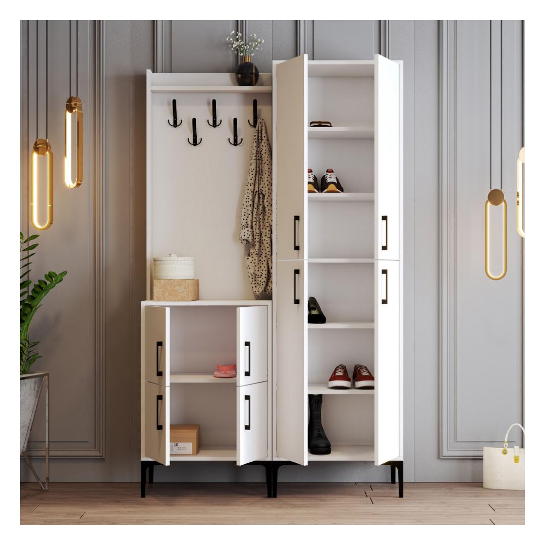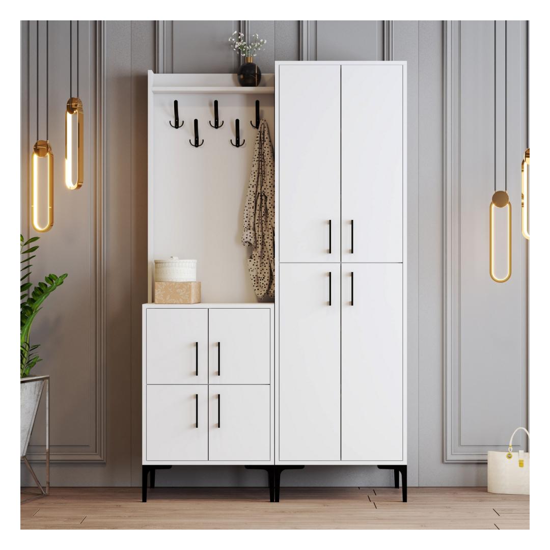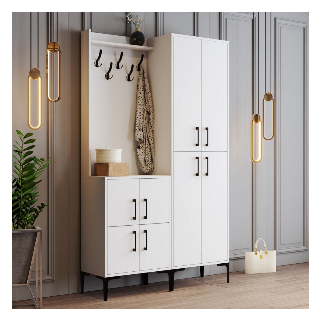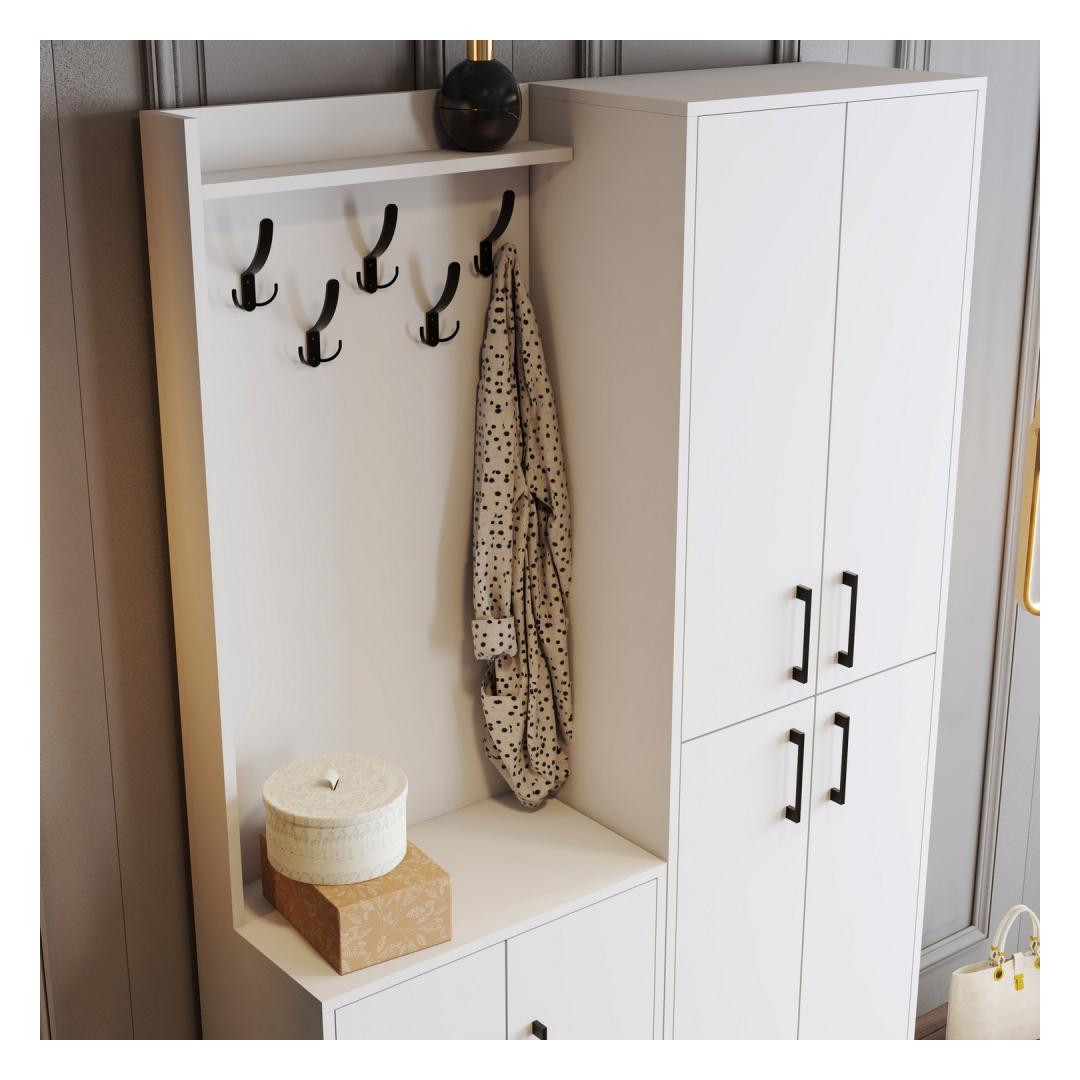 Transformeeri oma sissepääsutee elegantse ja funktsionaalse esiku stendigaTehke külalistele püsiv mulje, kui nad teie koju astuvad, meie suurepärase esiku stendiga. See detailide täpsuse ja tähelepanelikkusega valmistatud ese on loodud selleks, et tõsta teie sissepääsu stiilipositsiooni, pakkudes samal ajal piisavalt ruumi teie asjade hoidmiseks.Elegantne disain ja suurepärane kvaliteet100% melamiiniga kaetud puitlaastplaadist valmistatud saalialus on elegantse ja moodsa disainiga, mis sobitub sujuvalt mis tahes sisustusega. Metallist jalg, käepide ja riputusklamber lisavad rafineeritust, muutes selle täiuslikuks täienduseks teie kodule. Statiivi valge(d) värv(id) õhkavad puhtuse ja rahulikkuse tunnet, luues külalistele külalislahke õhkkonna. Rikkalik hoiustamisvõimalus ja mitmekülgsusVarustatud arvukate riiulitega, pakub meie saalihoidja palju ruumi mantlite, mütside, sallide ja muude oluliste esemete hoidmiseks. Riputatav mantlihoidja tagab hõlpsa juurdepääsu teie üleriietele, samas kui fikseeritud seinavõimalus tagab stabiilsuse ja turvalisuse. Ütle hüvasti segastele esikutele ja tere hästi organiseeritud ja kutsuvale ruumile. Tehnilised üksikasjad:Materjal: Materjal: Materjal: Materjal: Materjal: Materjal: Materjal: Materjal: materjal: 100% melamiiniga kaetud puitlaastplaatPaksus: 18 mmMetallist jalg, käepide ja riputusklamber lisakestvuse tagamiseksLaius: 120 cm, kõrgus: 200 cm, sügavus: 35 cm.Riputatav mantlihoidja tagab hõlpsa ligipääsu üleriieteleArvukad riiulid rohkeks hoiustamiseksSaab stabiilsuse ja turvalisuse tagamiseks kinnitada seinaleVärv: valgeUuendage oma esikusse sisenemise ruumi meie garderoobi stendiga ja kogege stiili ja funktsionaalsuse ideaalset kombinatsiooni. Tellige kohe ja tehke oma kodukaunistusega avaldus! Värv: White