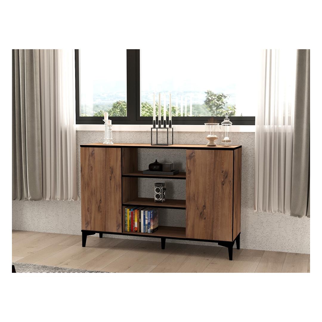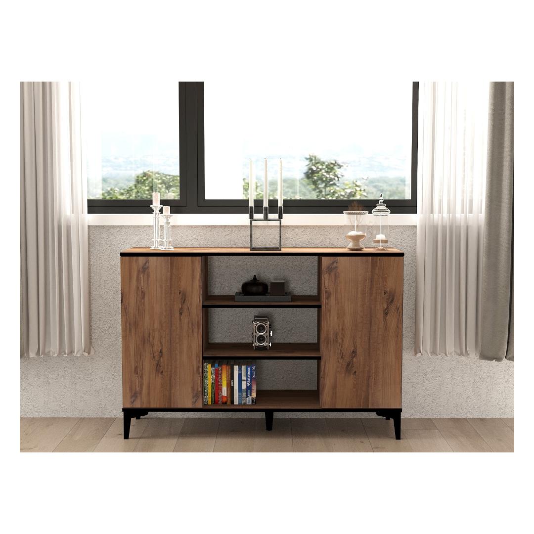 Muuda oma eluruum selle hämmastava konsooliga, mis kiirgab elegantsi ja rafineeritust. Valmistatud 100% melamiinkattega puitlaastplaadist, on see konsool mitte ainult vastupidav, vaid ka uskumatult stiilne. Atlandi mänd ja must värvikombinatsioon lisab igasse ruumi modernsuse puudutuse, muutes selle ideaalseks lisandiks sinu kodu sisustusse.