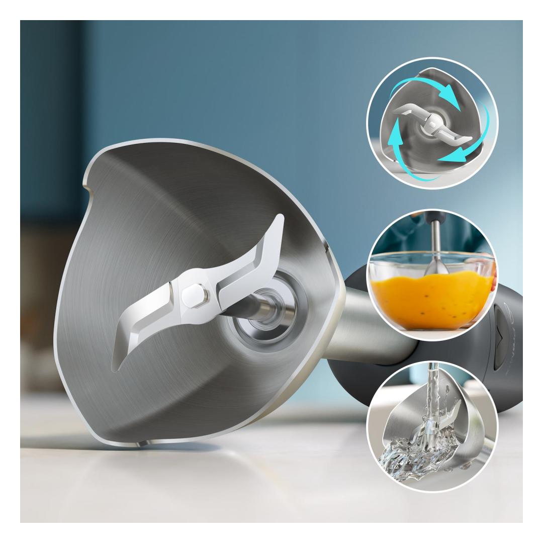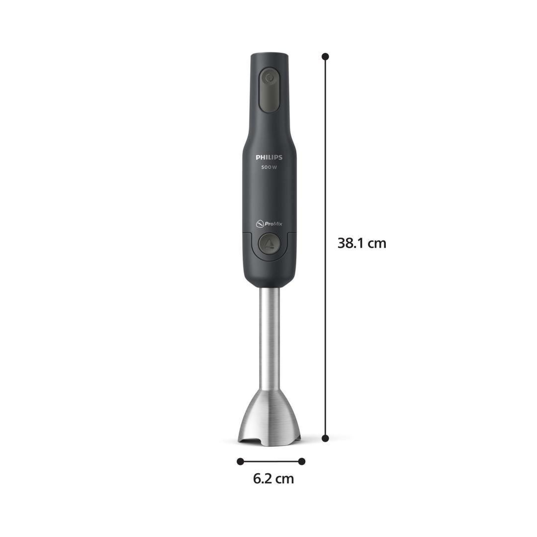 Philips 1000 series HR2522/00. Type: Immersion blender, Cord length: 1.2 m, Brand specific technologies: ProMix, SpeedTouch. Rotational speed (max): 15000 RPM. Housing material: Metal, Shaft material: Metal, Blade material: Stainless steel. Power: 500 W, Power source: AC, AC input voltage: 230 V. Width: 62 mm, Depth: 73 mm, Height: 381 mm