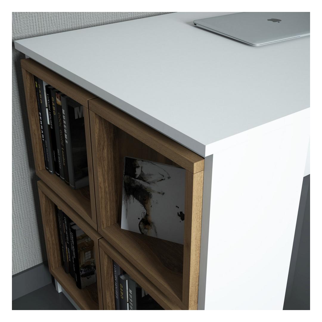 Meie töölaud oma elegantse ja kaasaegse disainiga tõstab koheselt teie õpperuumi atmosfääri. Valge ja pähklipuu värvi kombinatsioon lisab rafineeritust, luues ruumi, mis on nii kutsuv kui ka inspireeriv. Olenemata sellest, kas olete üliõpilane või professionaal, aitab see töölaud teil vabastada oma loovust ja keskenduda oma ülesannetele.