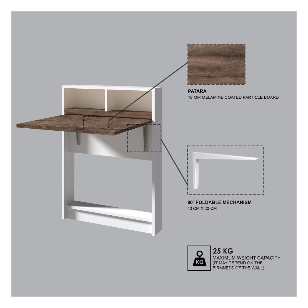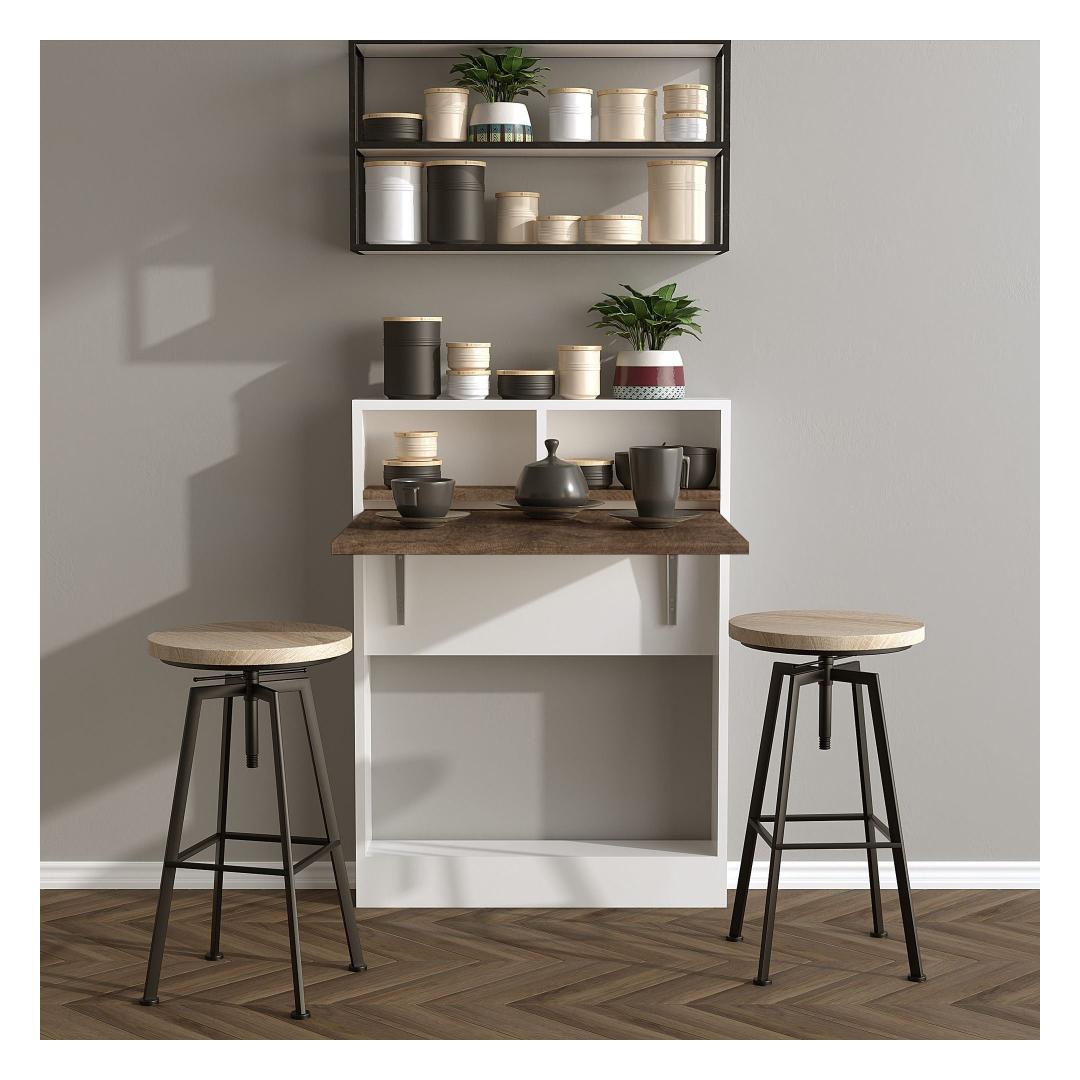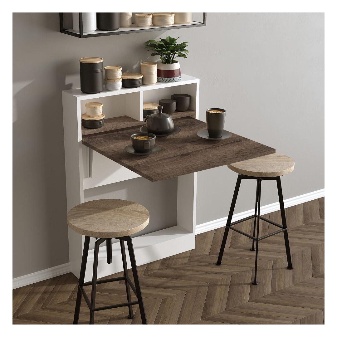 Ütle hüvasti segadusele, tänu sellele kokkuklapitavale lauale kaasasolevatele mitmetele riiulitele. Olgu sul vaja lisaruumi raamatute, dekoratsioonide või kontoritarvete jaoks, see laud katab kõik sinu vajadused. Lisaks annab võimalus see seina külge kinnitada lisakihi turvalisust ja stabiilsust.
