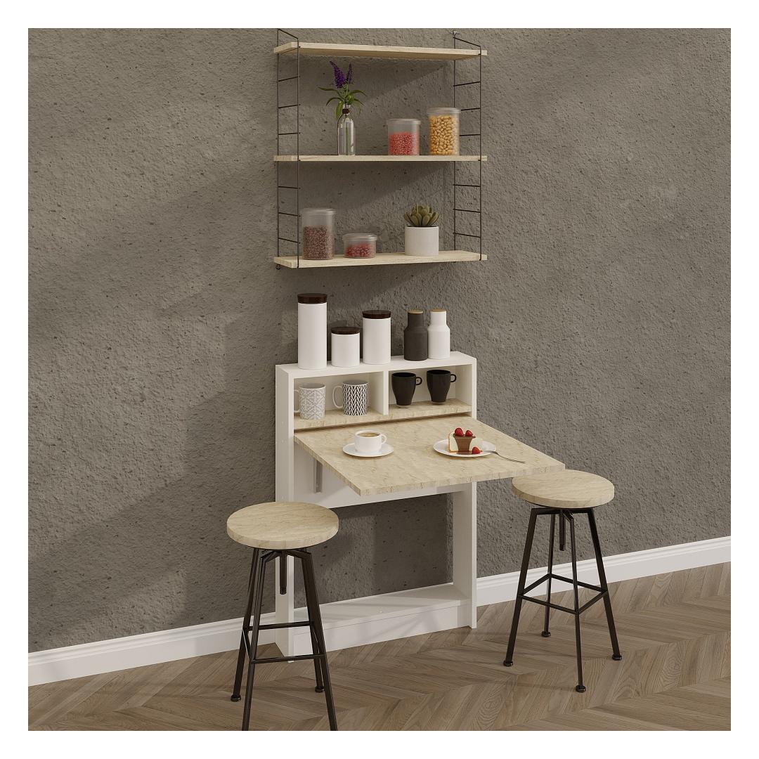 Seda kokkupandavat lauda saab hõlpsasti seinale kinnitada, säästes väärtuslikku põrandapinda ja andes teile paindlikkuse, et seda vastavalt vajadusele ümber paigutada. Kui vajate köögis täiendavat tööruumi või mugavat kohta kontoritarvete hoidmiseks, siis see laud on teie jaoks olemas.