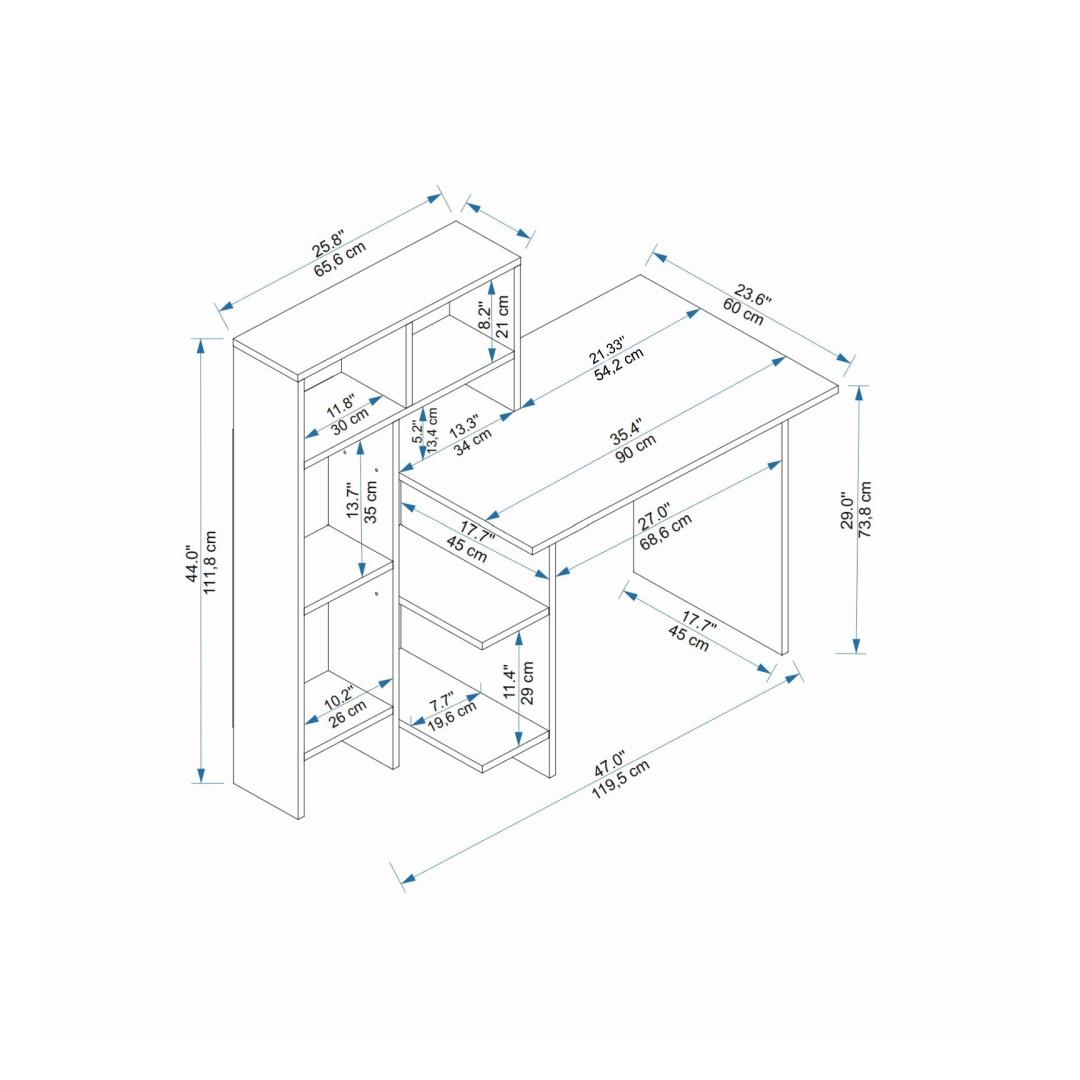 Meie õppelaua arvukate riiulitega pakub rohkelt hoiuruumi kõigile teie õppetööks vajalikele esmatähtsatele asjadele. Alates raamatutest ja märkmikutest kuni kirjatarvete ja vidinateni, kõik saab olla kenasti organiseeritud ja käeulatuses.