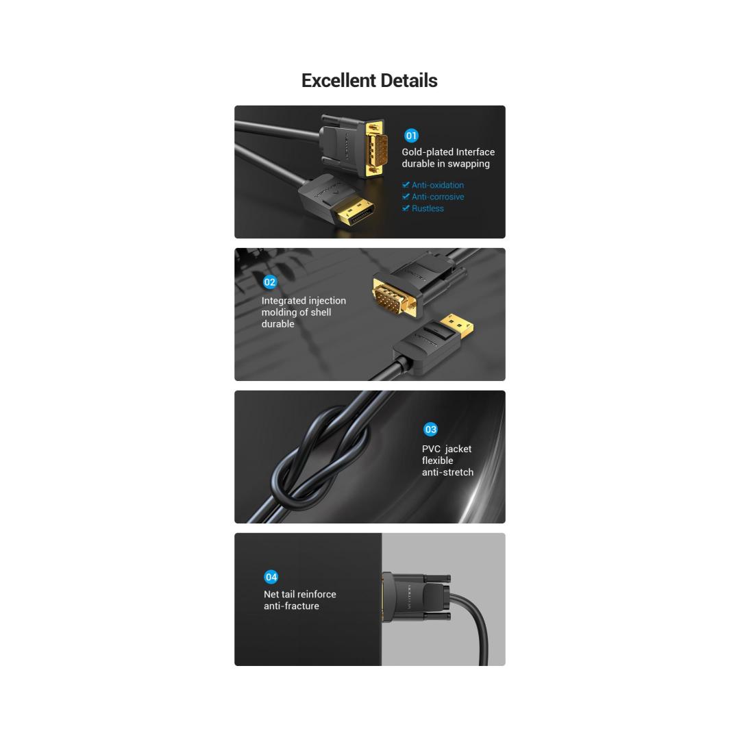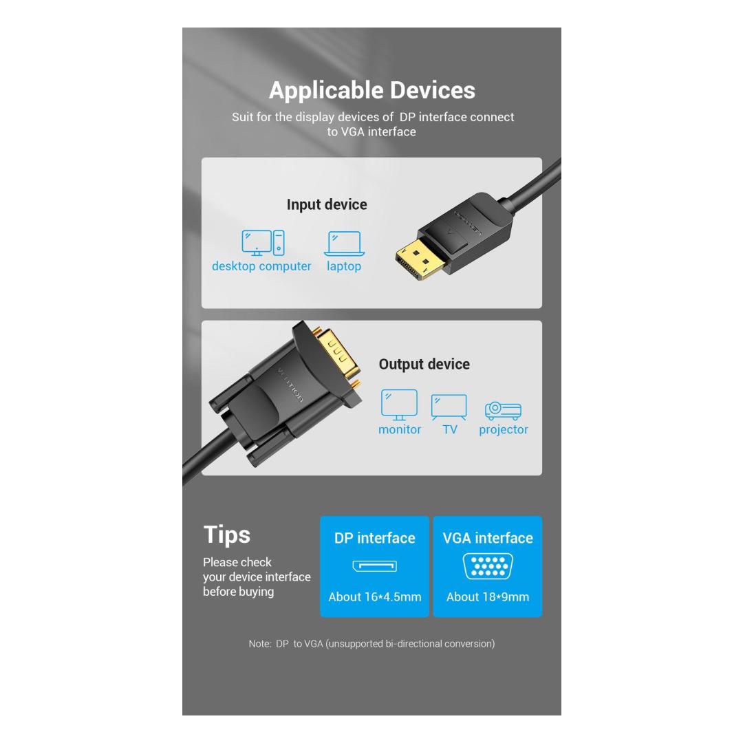 CABLE DP TO VGA 2M/BLACK HBLBH VENTION