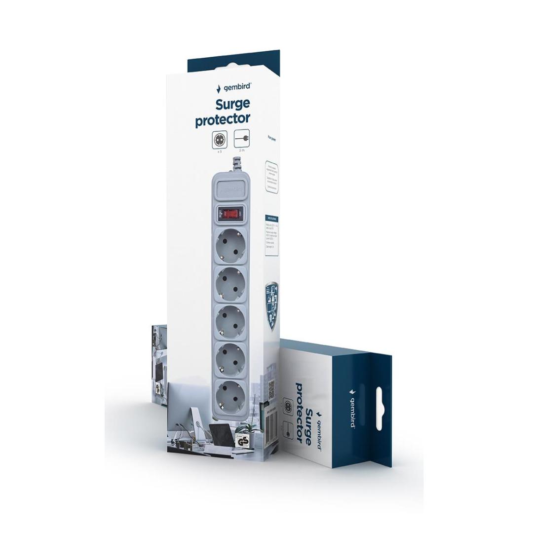 Gembird SPG3-B-10C. AC outlets quantity: 5 AC outlet(s). Cable length: 3 m. Package width: 45 mm, Package depth: 98 mm, Package height: 340 mm