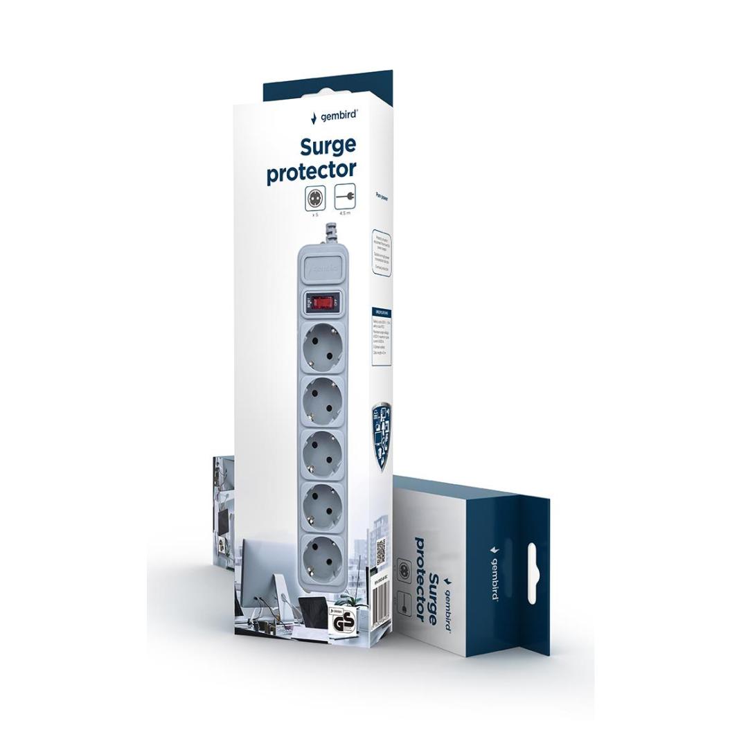 Gembird SPG3-B-15C. AC outlets quantity: 5 AC outlet(s). Cable length: 4.5 m. Package width: 45 mm, Package depth: 105 mm, Package height: 340 mm