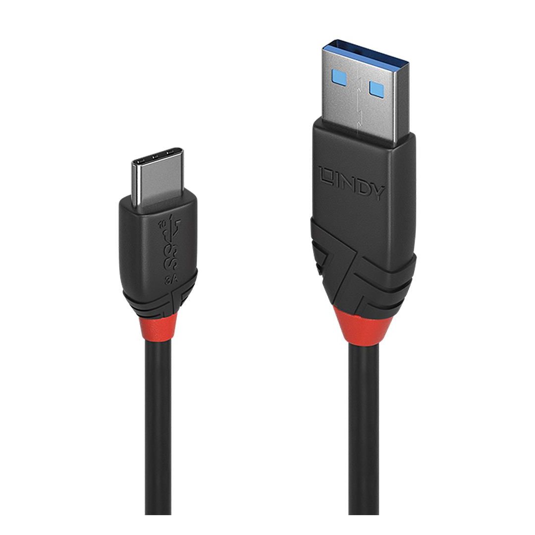 1m USB 3.2 Type A to C Cable, 10Gbps, Black Line.