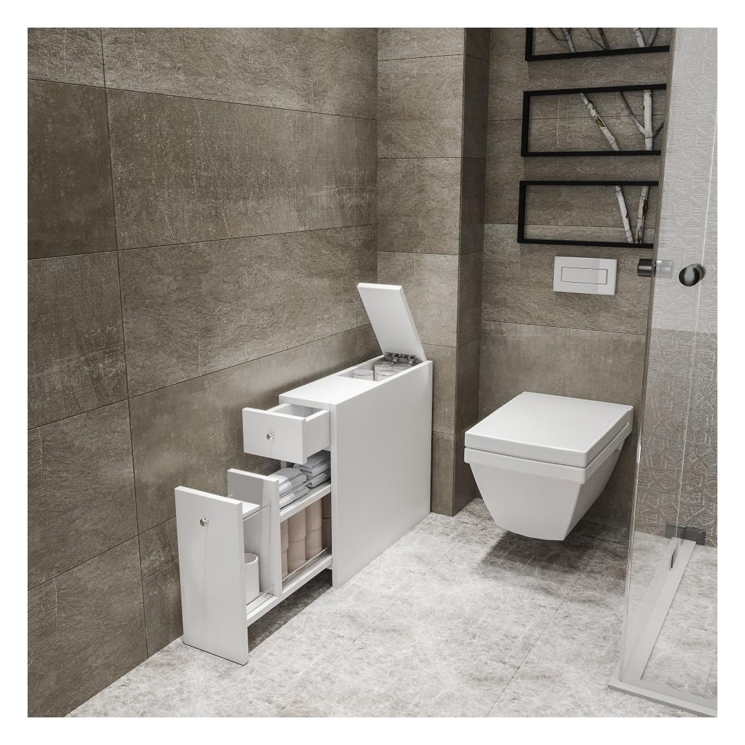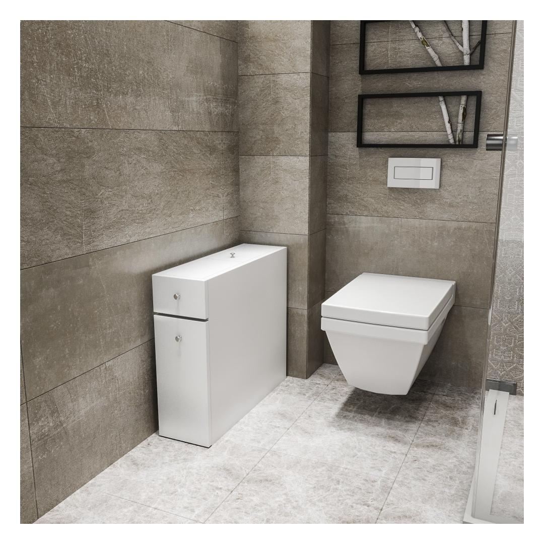 Muuda oma vannituba rahulikuks oaasiks meie Skandinaavia inspireeritud vannitoakapiga. 100% melamiinkattega puitlaastplaadist valmistatud kapp kiirgab kvaliteeti ja vastupidavust. Sujuv disain ja valge värv tõstavad koheselt teie vannitoa ilmet, luues rahustava atmosfääri, kus saate pärast pikka päeva lõõgastuda.