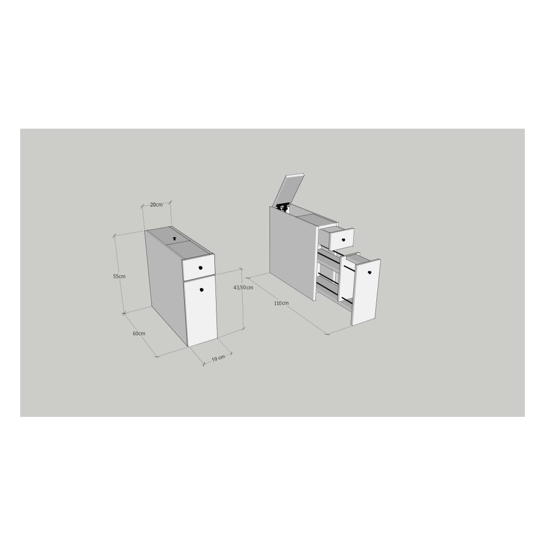 • Laius: 20 cm, Kõrgus: 55 cm, Sügavus: 60 cm