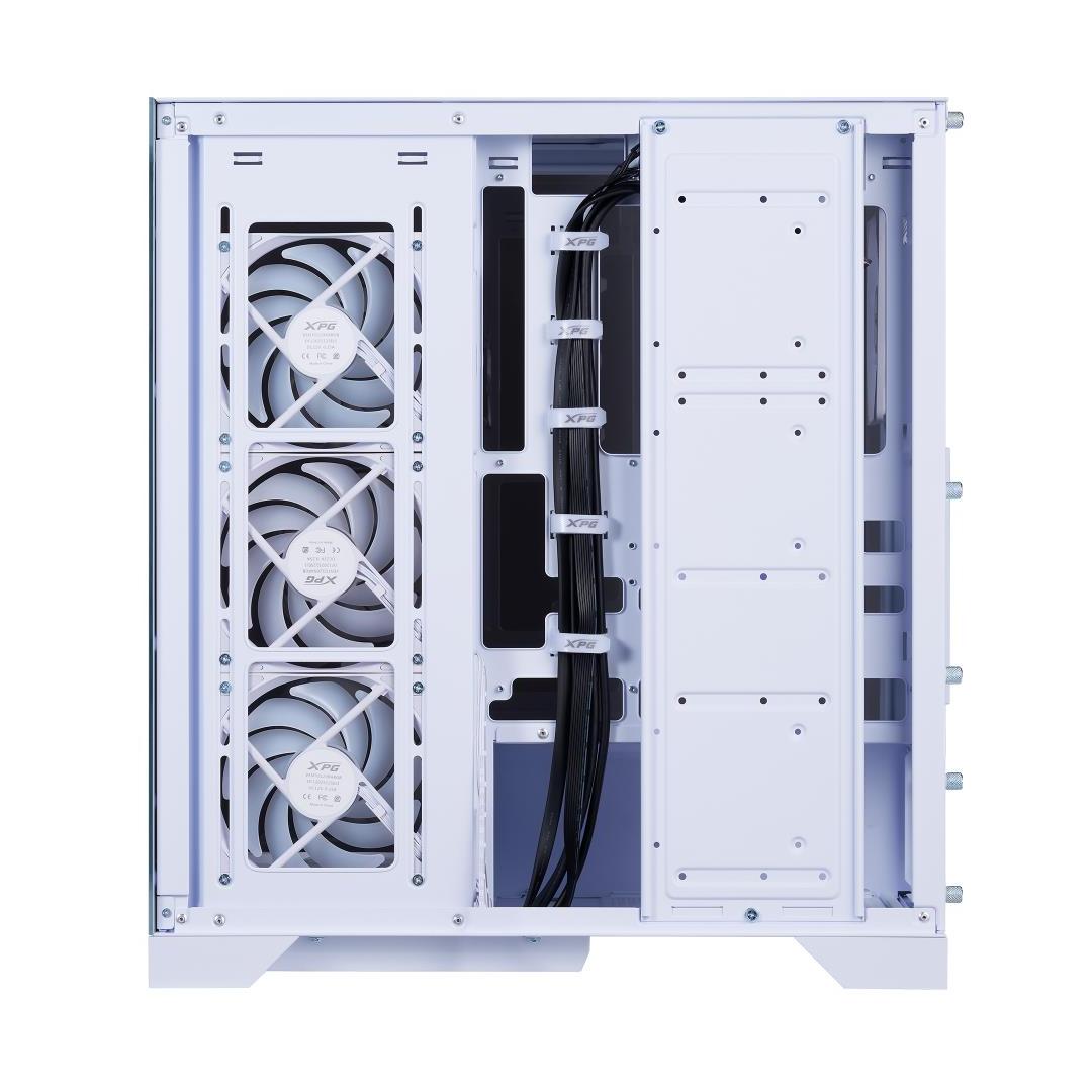 XPG's newest ocean-view chassis boasts compatibility with the latest ATX reverse-connector motherboards, providing the ultimate platform to showcase your clean cable management. Equipped with four pre-installed reverse fans and one standard fan, it ensures optimal airflow performance while maintaining a sleek aesthetic from every angle.