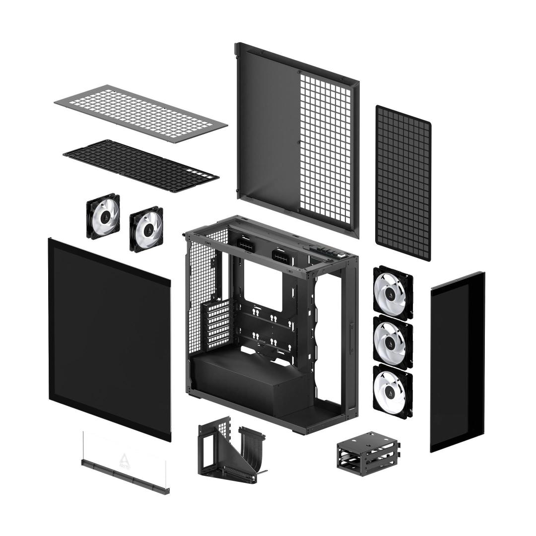 PSU Not included, 2x P12 Pro A-RGB (pre-installed at rear), 3x P14 Pro Reverse A-RGB (pre-installed at side)