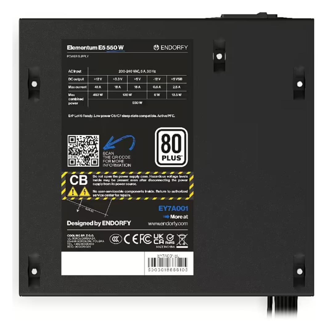 Elementum E5 550 W is a stable PSU with an h80 PLUS® that will protect your PC both from power surges at a steady 550 W. It will work well both as a product for PC integrator use as well as for home assembly.