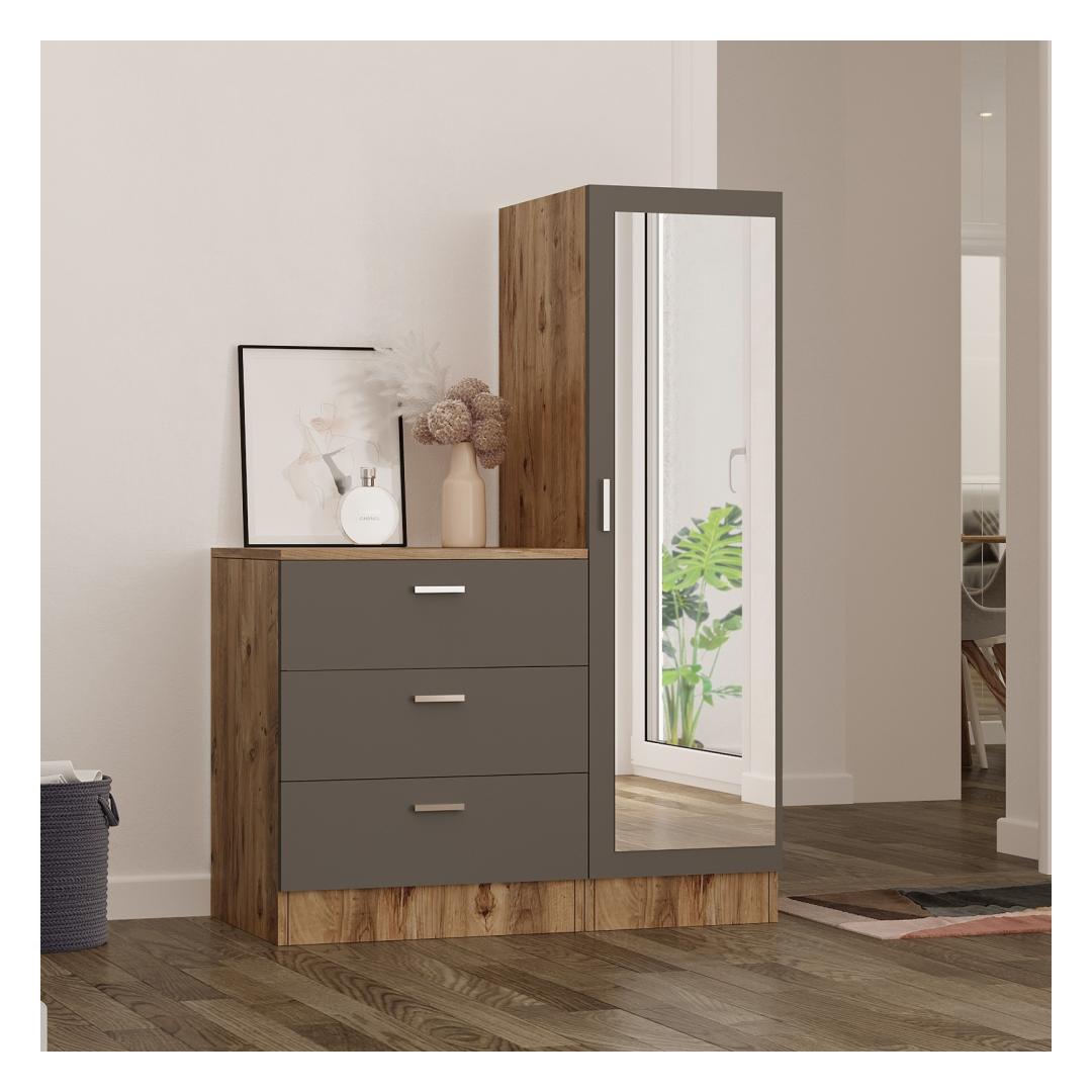 Transformeeri oma ruumi mitmeotstarbelise kapigaKas olete väsinud segadusest ja korrastamatusest oma kodus? ei vaata kaugemale kui meie mitmeotstarbeline kapp, et lahendada kõik oma hoiustamisprobleemid. See mitmekülgne ja stiilne kapp on loodud selleks, et tuua igasse ruumi kaasaegsust ja uudsust, pakkudes samal ajal piisavalt ruumi kõigile teie asjadele.Võrratu kvaliteet ja vastupidavusSee 100% melamiiniga kaetud puitlaastplaadist valmistatud kapp on valmistatud kestma. Paksus 18 mm tagab vastupidavuse ja tugevuse, mistõttu on see võimeline vastu pidama aja katsumusele. Metallraam lisab täiendava vastupidavuse, tagades, et teie kapp jääb terveks aastateks. Rikkalik hoiuruumKolme mahuka sahtli ja arvukate riiulitega pakub see kapp palju ruumi oma asjade hoidmiseks. Olgu selleks siis riided, raamatud või majapidamistarbed, teil on lõpuks ometi kõigele kindel koht. Ütle hüvasti segadusele ja tere organiseeritud ja korrastatud eluruumile. Stiilne disainMitmeotstarbelisel kapil on kaunis atlantilise männi ja antratsiidi värvide kombinatsioon, mis lisab igasse ruumi elegantsi. Selle moodne ja uudne kontseptsioon tõstab koheselt teie ruumi esteetilist atraktiivsust, muutes selle kõigi teie külaliste imetlusobjektiks. Tehnilised üksikasjad:Materjal: Materjal: Materjal: Materjal: Materjal: Materjal: Materjal: Materjal: materjal: 100% melamiiniga kaetud puitlaastplaatPaksus: 18mmMetallraam lisab vastupidavustSahtli suurus: Laius: 60 cm, kõrgus: 72 cm, sügavus: 45 cm.Kapi suurus: Laius: 40 cm, kõrgus: 140 cm, sügavus: 45 cmVärv: Atlandi mänd ja antratsiitÄrge jätke kasutamata võimalust muuta oma ruumi meie mitmeotstarbelise kapi abil. Tellige kohe ja kogege mugavust ja stiili, mida see teie koju toob. Värv: Atlantic Pine Anthracite