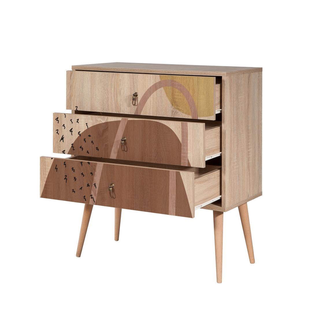 See 100% melamiiniga kaetud puitlaastplaadist valmistatud kapp on ehitatud nii, et see peab vastu aja katsumusele. Puidust jalad tagavad stabiilsuse ja lisavad üldisele disainile rafineerituse. Tänu arvukatele riiulitele ja täiendavale panipaigale saate nüüd oma asju vaevata korraldada, hoides oma ruumi segadusteta.