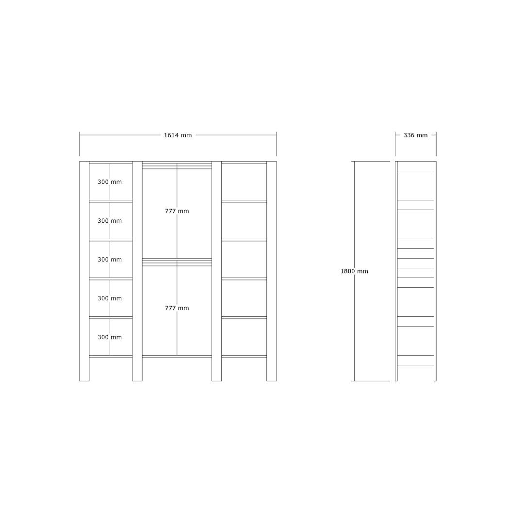 Width: 161,4 cm Height: 180 cm Depth: 33,6 cm