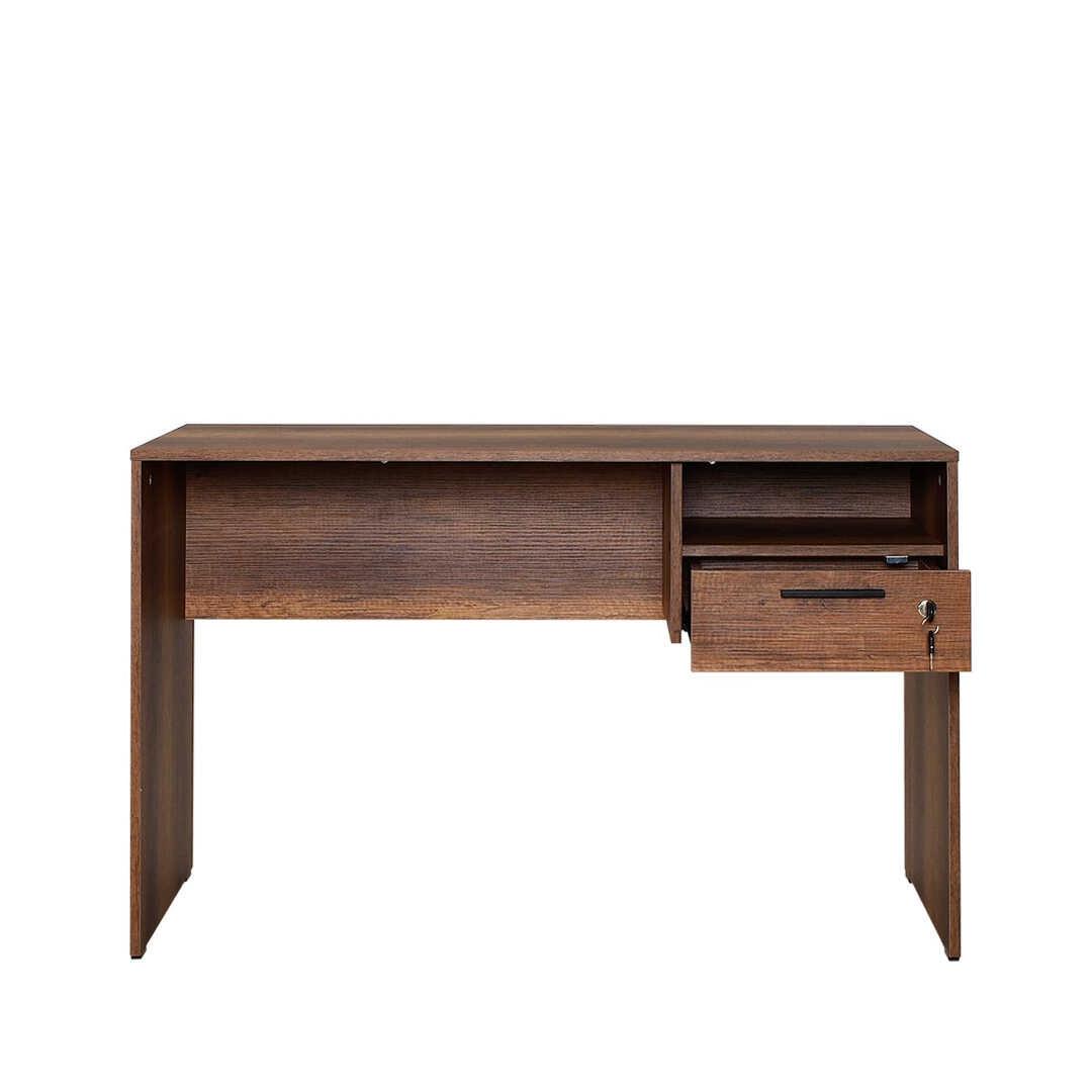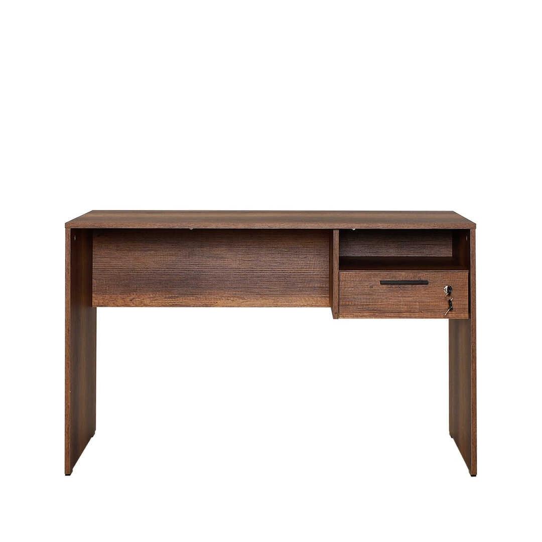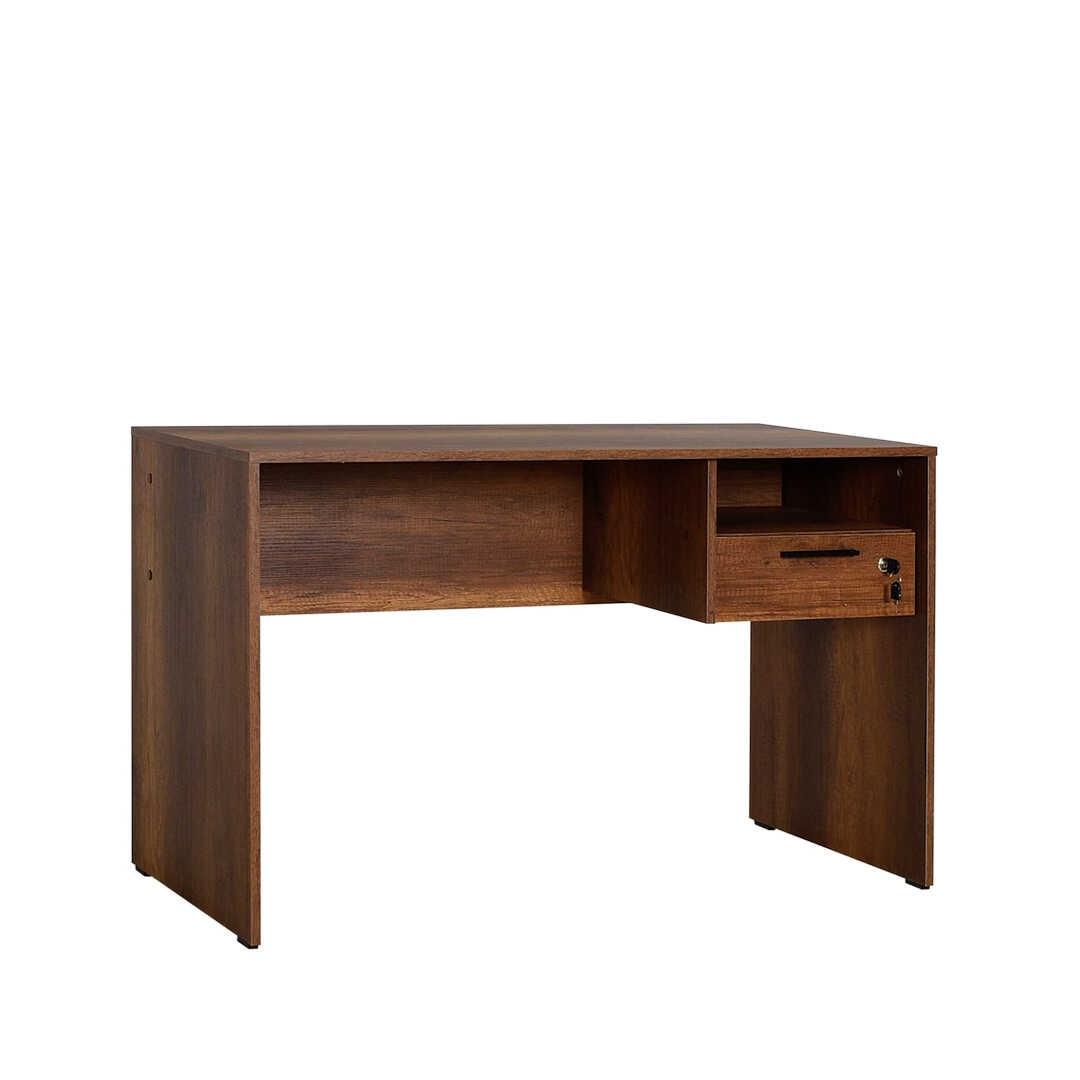120 cm laiuse, 75 cm kõrguse ja 60 cm sügavusega kirjutuslaud pakub rohkelt pinda kõigi õppematerjalide jaoks. 14 cm kõrgune sahtel pakub piisavalt ruumi pliiatsite, märkmike ja muude oluliste asjade hoidmiseks, samas kui arvukad riiulid võimaldavad teil hoida oma ruumi korrastatuna ja segadusteta.