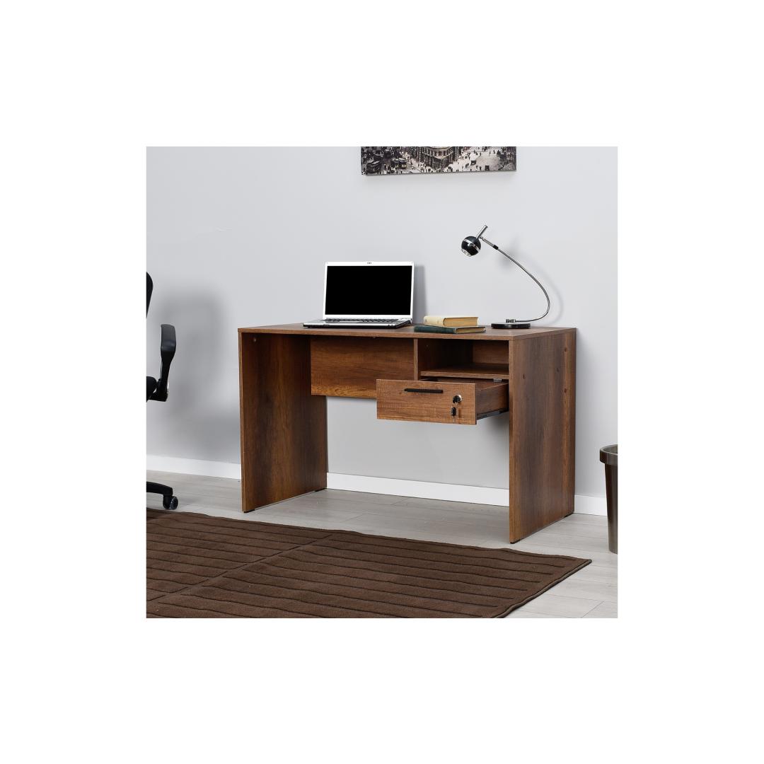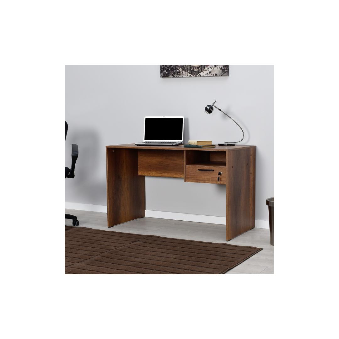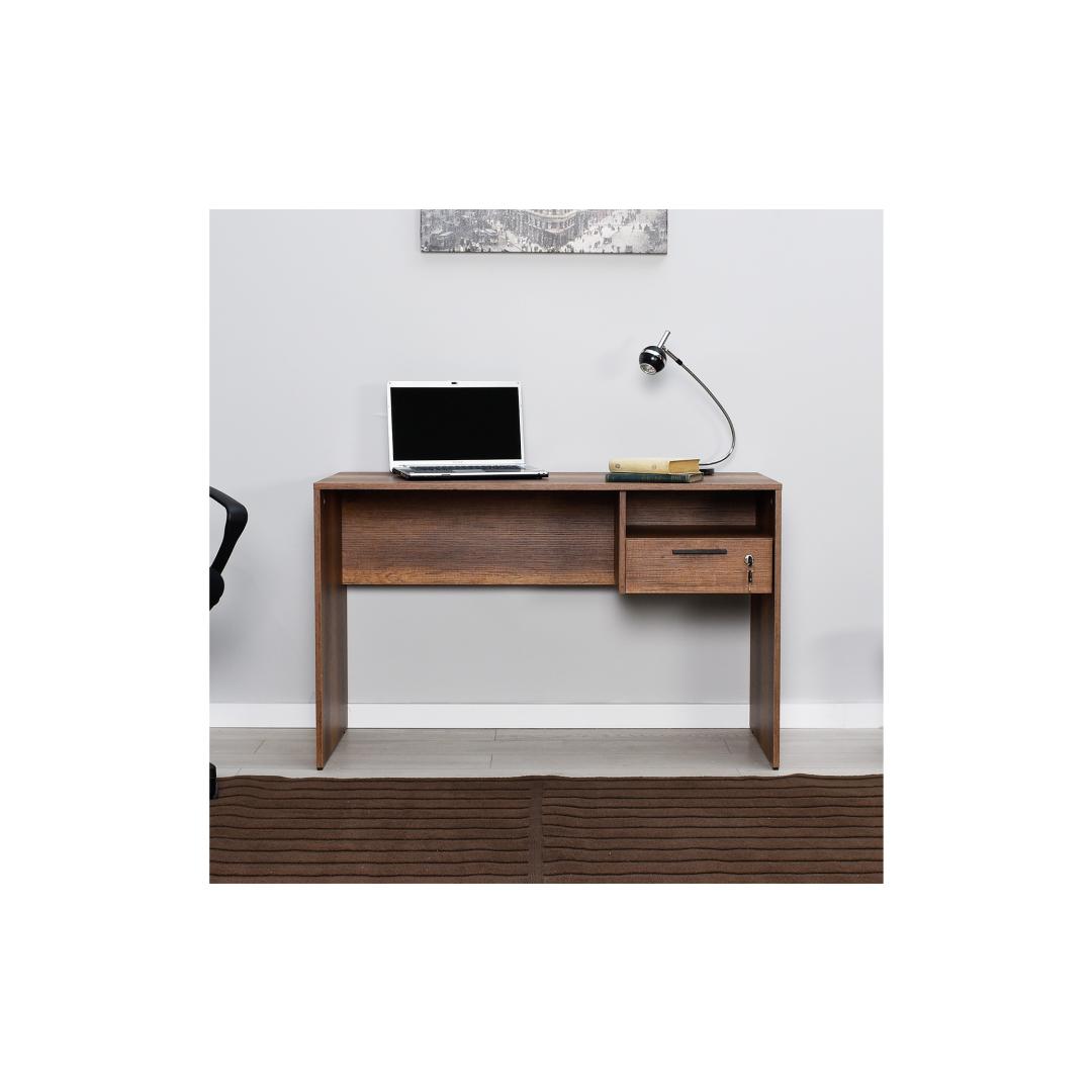 120 cm laiuse, 75 cm kõrguse ja 60 cm sügavusega kirjutuslaud pakub rohkelt pinda kõigi õppematerjalide jaoks. 14 cm kõrgune sahtel pakub piisavalt ruumi pliiatsite, märkmike ja muude oluliste asjade hoidmiseks, samas kui arvukad riiulid võimaldavad teil hoida oma ruumi korrastatuna ja segadusteta.
