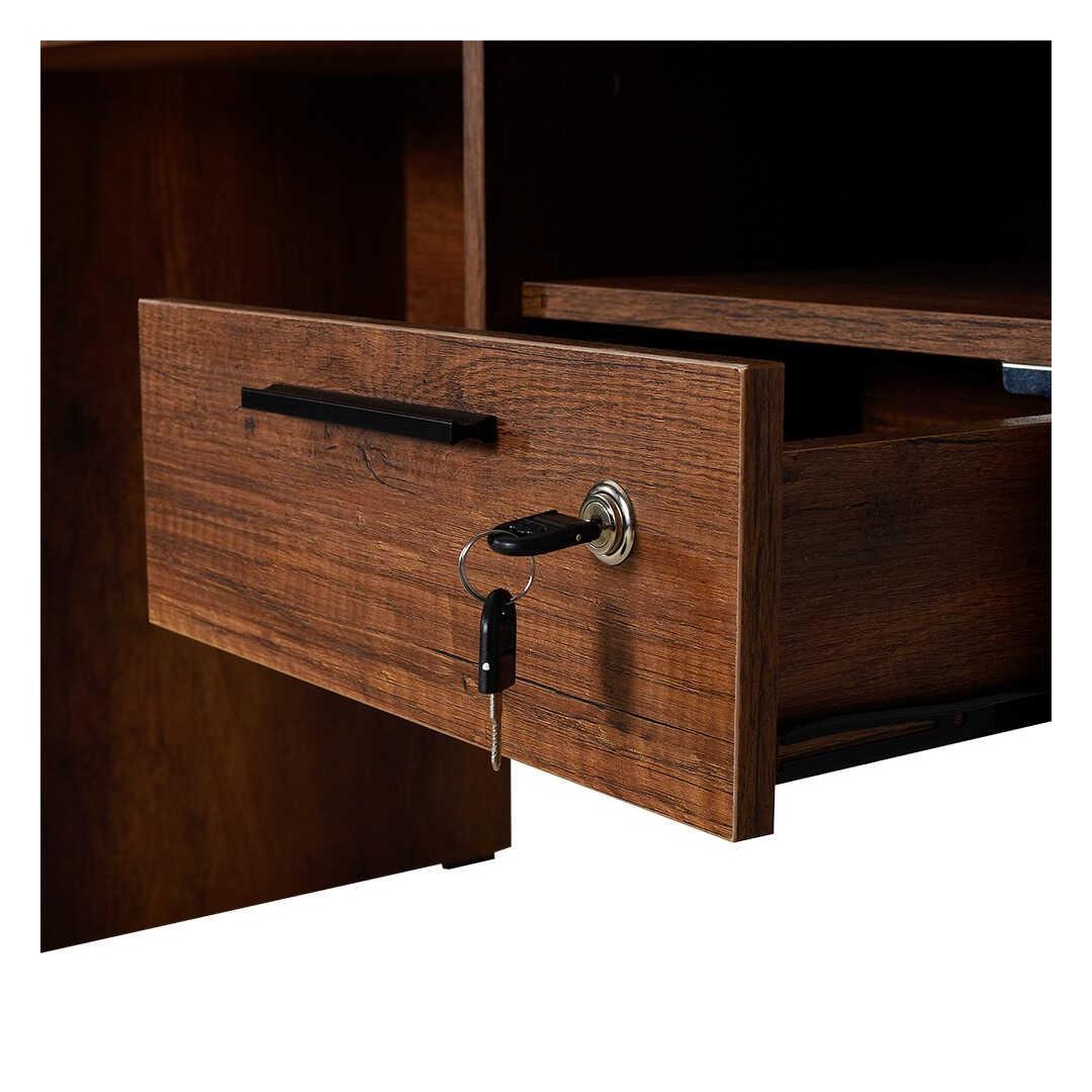 Kirjutuslaua stiilne disain ja pähklipuidust värv lisab igasse ruumi elegantsust, muutes selle ideaalseks täienduseks teie kodukontorile või tööruumile. Lisaks tagab selle seinale kinnitatavus stabiilsuse ja turvalisuse, nii et saate keskenduda oma tööle ilma kõrvaliste häireteta.