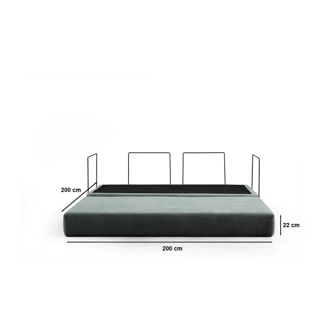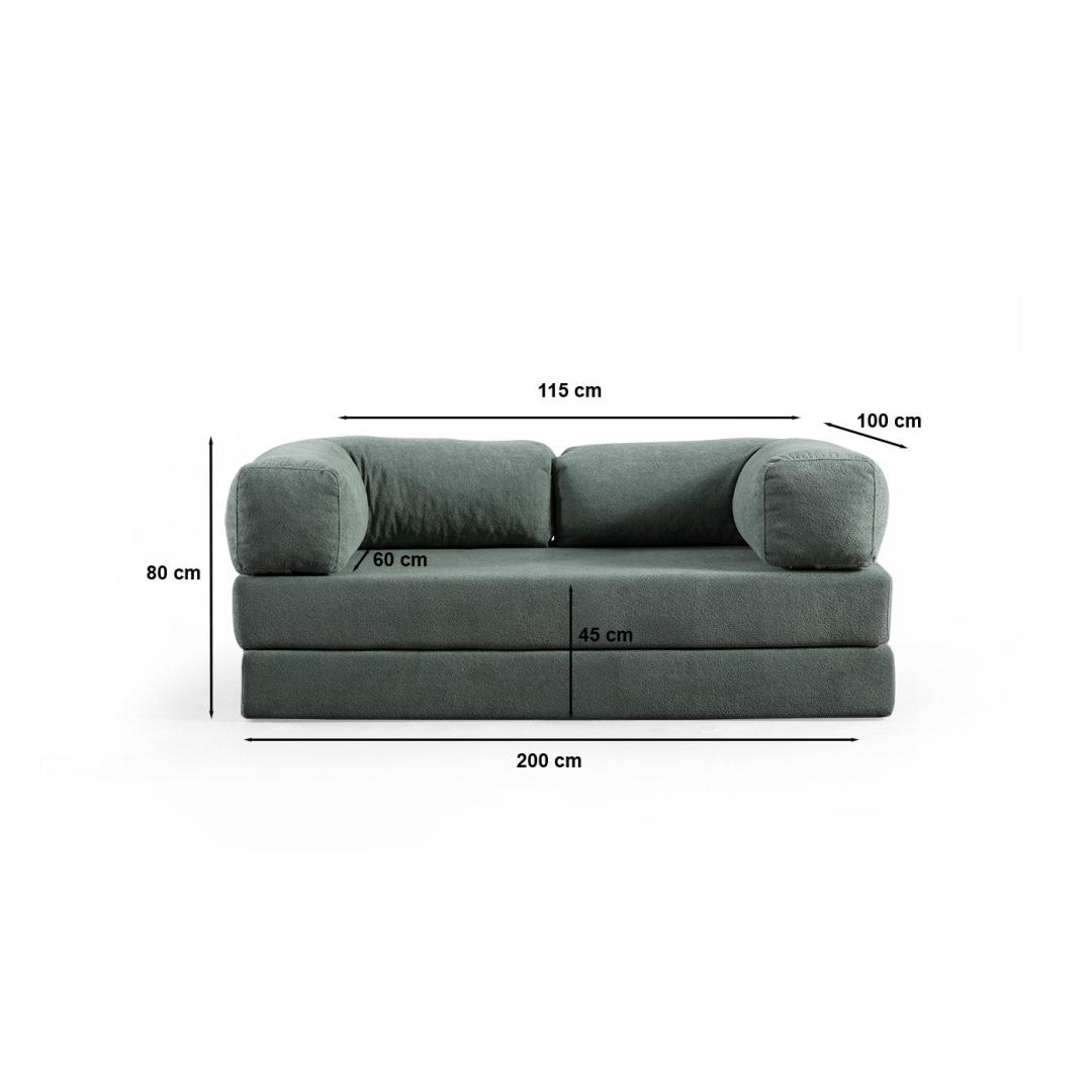 Valmistatud sleek ja modernse disainiga, on see diivan raamita, täielikult vahtmaterjalist struktuur, mis on nii mugav kui ka vastupidav. 100% polüesterkangas on mitte ainult pehme puudutusele, vaid ka kergesti puhastatav, muutes hooldamise lihtsaks. Toetav vahtmaterjalist struktuur jalgadega, millel on must metallpulberkattega viimistlus, lisab igasse ruumi elegantsi.
