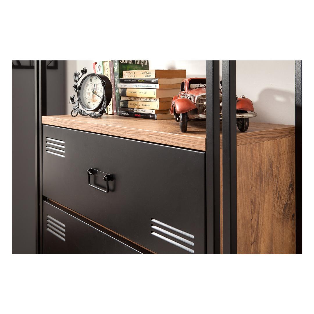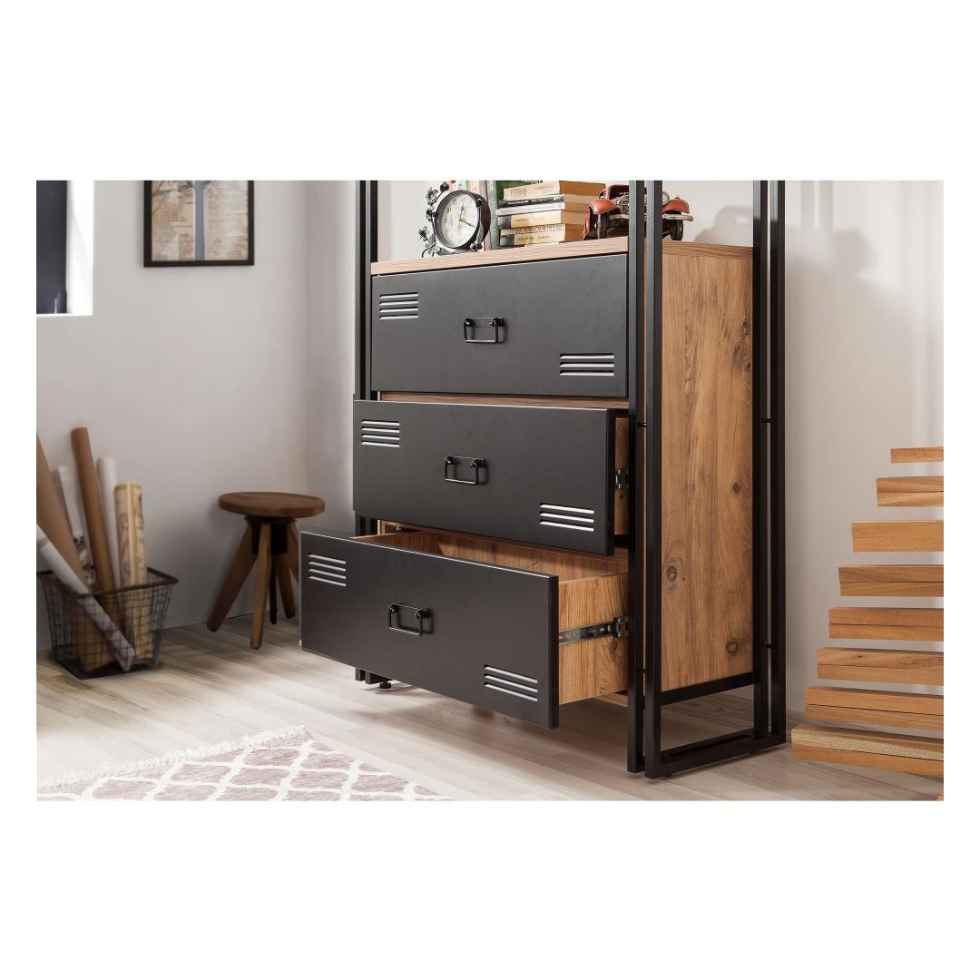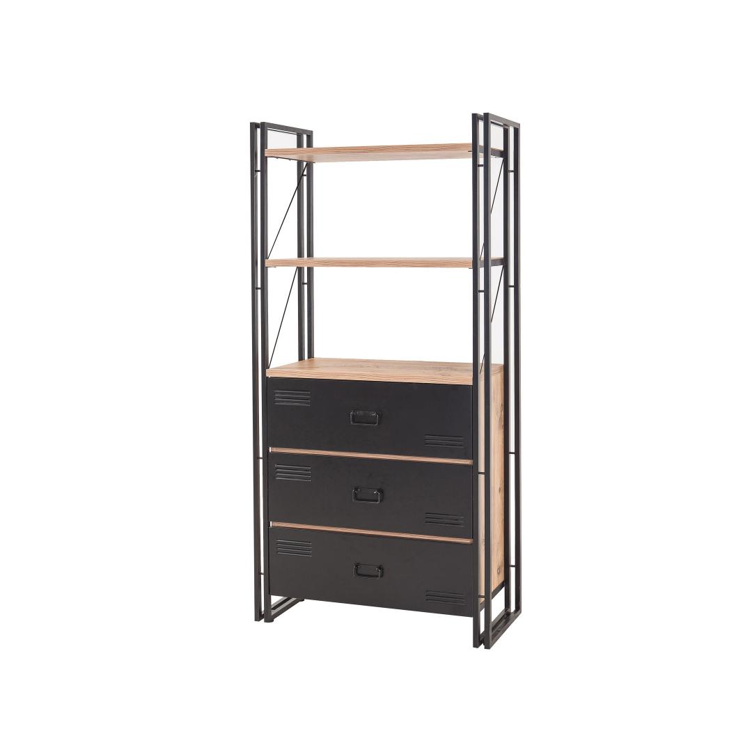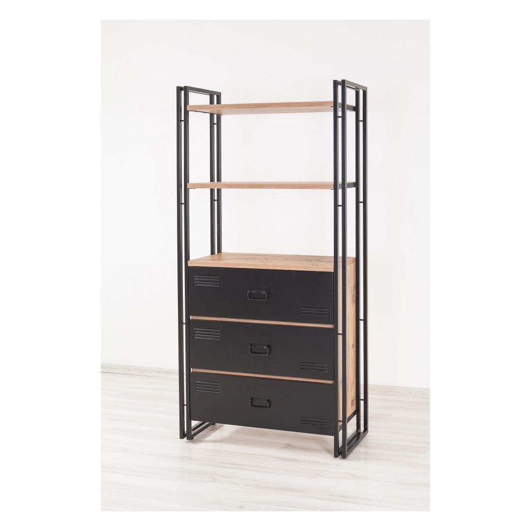 Kolme metallplaadiga sahtlit ja arvukalt riiuleid sisaldav raamaturiiul pakub piisavalt ruumi kõigi teie asjade hoidmiseks. Teleskoopilised sahtliugurid ja metallist käepidemed muudavad esemetele ligipääsu lihtsaks, samas kui sahtli kõrgus 25 cm võimaldab mitmekülgseid hoiustamisvõimalusi.