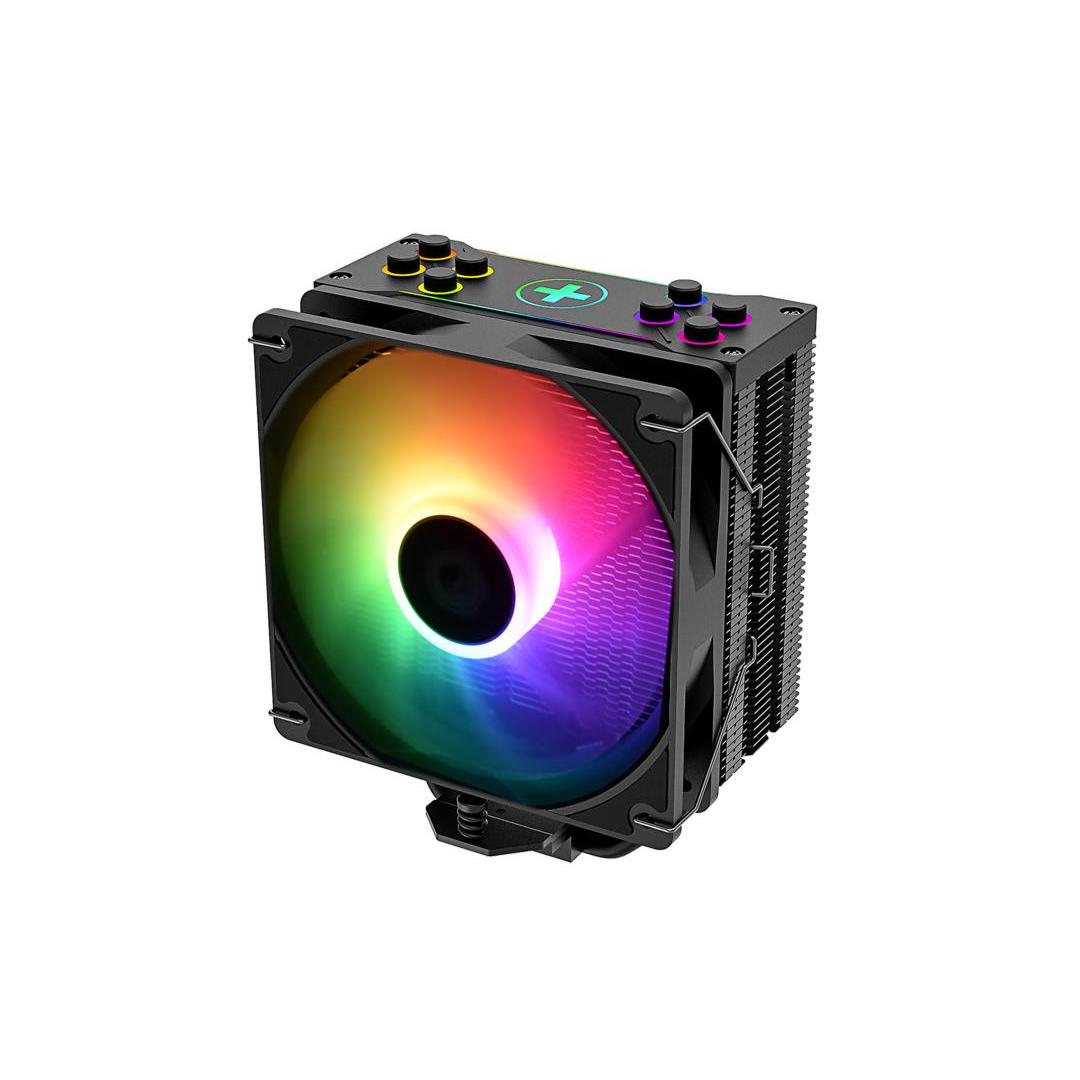 The new M704PRO.ARGB CPU cooler from the Performance A+ series brings light into the inside of the case. In order to highlight the CPU cooler the LED lights of the RGB lightning systems are seperately addressable and furthermore the complete the rest is designed in black. The top cover has a ARGB lighting. With its 3PIN 5V D/P ARGB M/B connector being linked to the equivalent connector on the mainboard, the fan’s color scheme can be controlled. In case there is no such RGB M/B connector on the mainboard, the M704.ARGB offers the possibility to manage the color scheme via a mini controller (being powered via the S-ATA connector of the PSU). With this design and its specifications, the M704PRO.ARGB cooler is especially appropriate for gaming systems. Thanks to the multi-socket design, the cooler can be applied on all current AMD and Intel sockets. Included in the scope of delivery is – besides heatsink and 120mm PWM fan – mounting material for sockets LGA1150/1151/1155/1156/1200/1700, LGA2066/2011 and AM4 , illustrated assembly instructions as well as a tube of thermal paste.