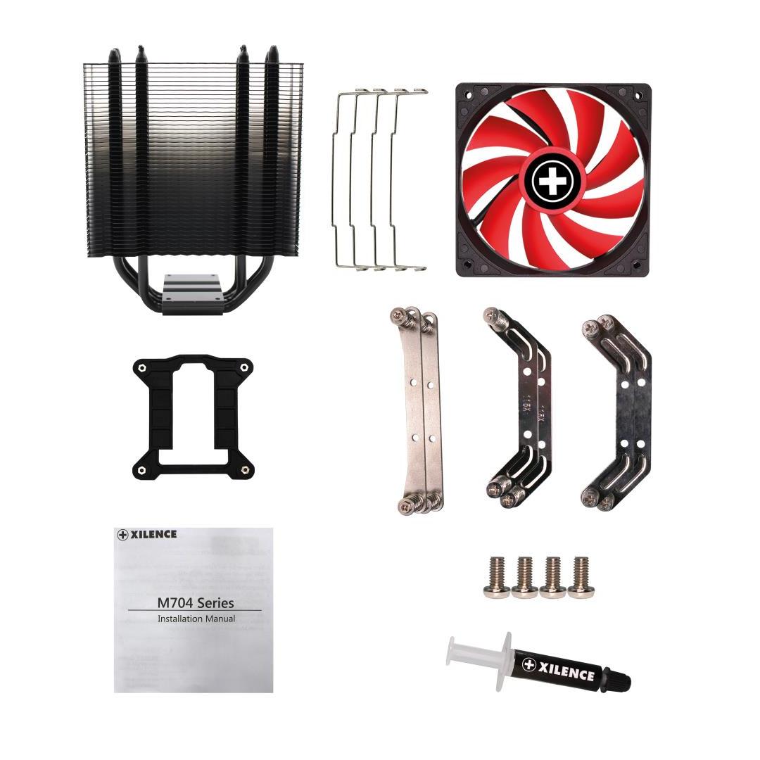 The new M704 is the first CPU cooler to widening the Performance A+ series. Just like the power supplies, this CPU cooler is completely black, with a red fan. The M704 has four equally black, extremely efficient heat pipes, which allow for a cooling capacity of up to 180W.