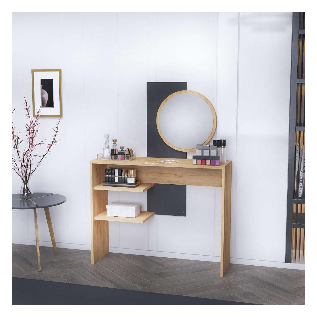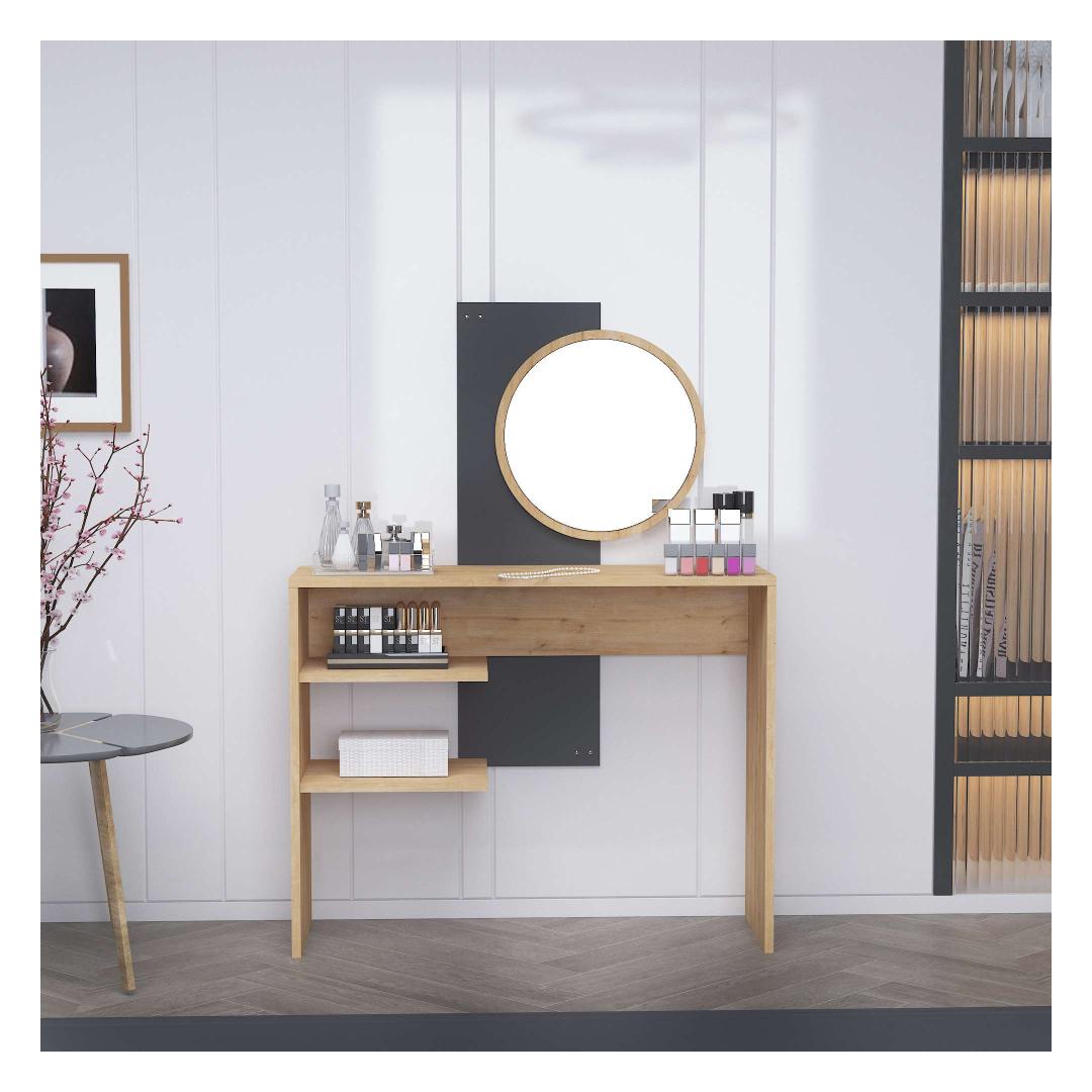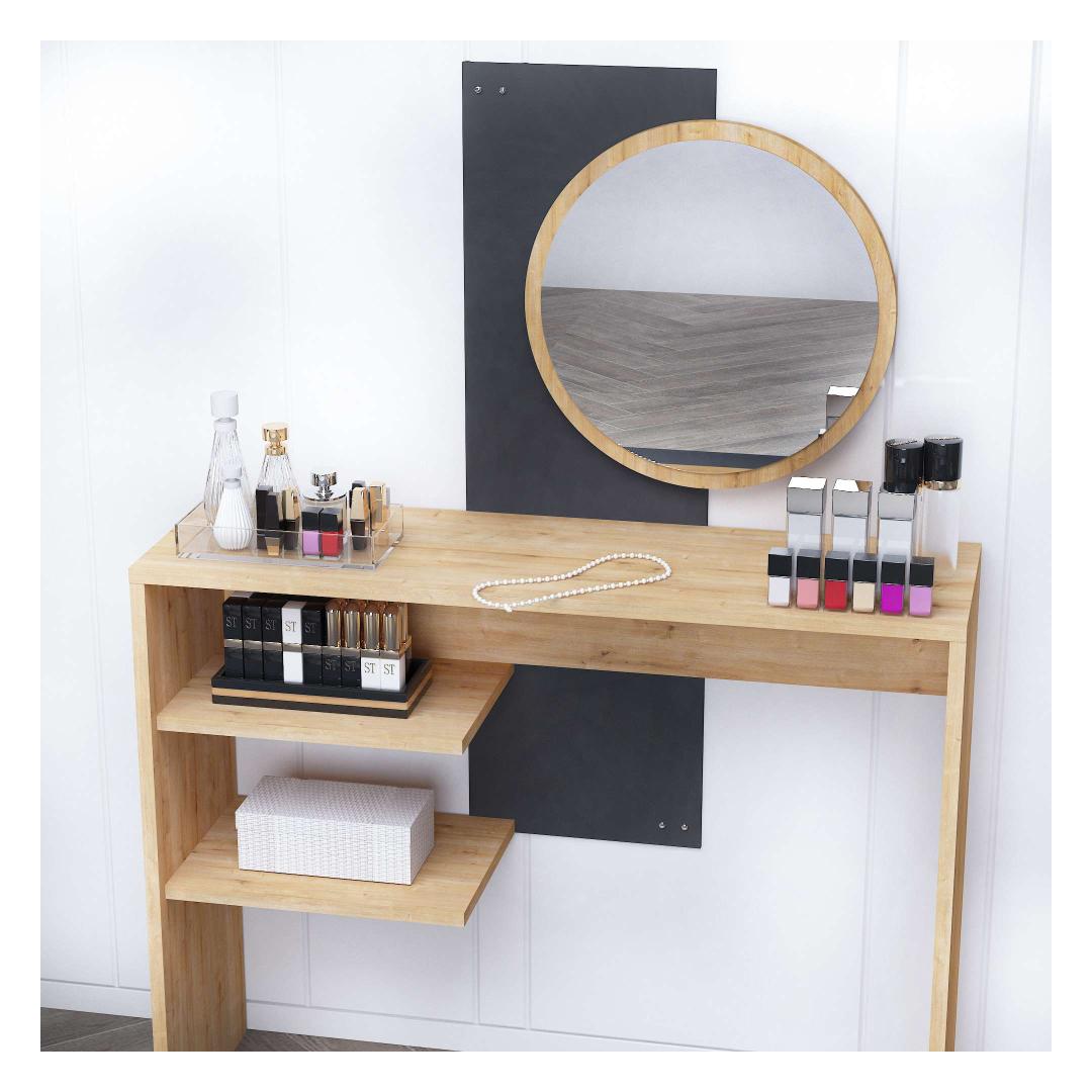 Olgu sa valmistumas tööks või õhtuseks väljasõiduks, meie meigilaud muutub sinu lemmikpaigaks kodus. Kaasaegne disain ja sujuvad värvid tõstavad sinu magamistoa või riietusruumi ilmet, luues luksusliku atmosfääri, mis inspireerib enesekindlust ja ilu.