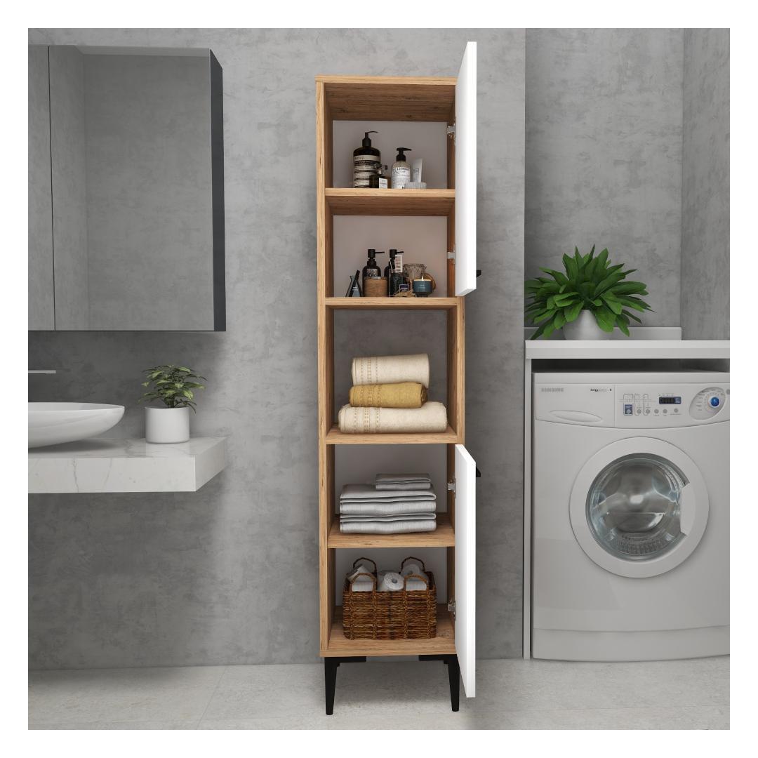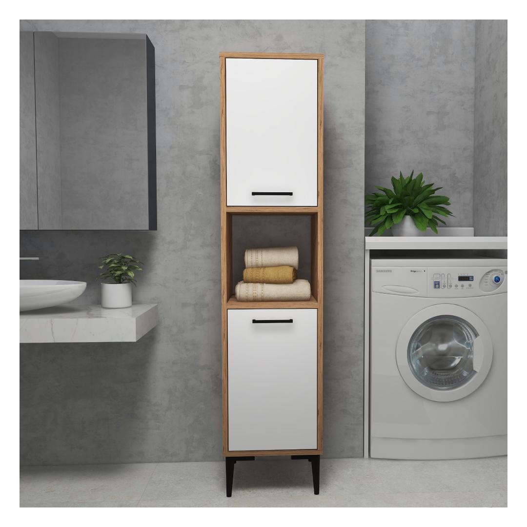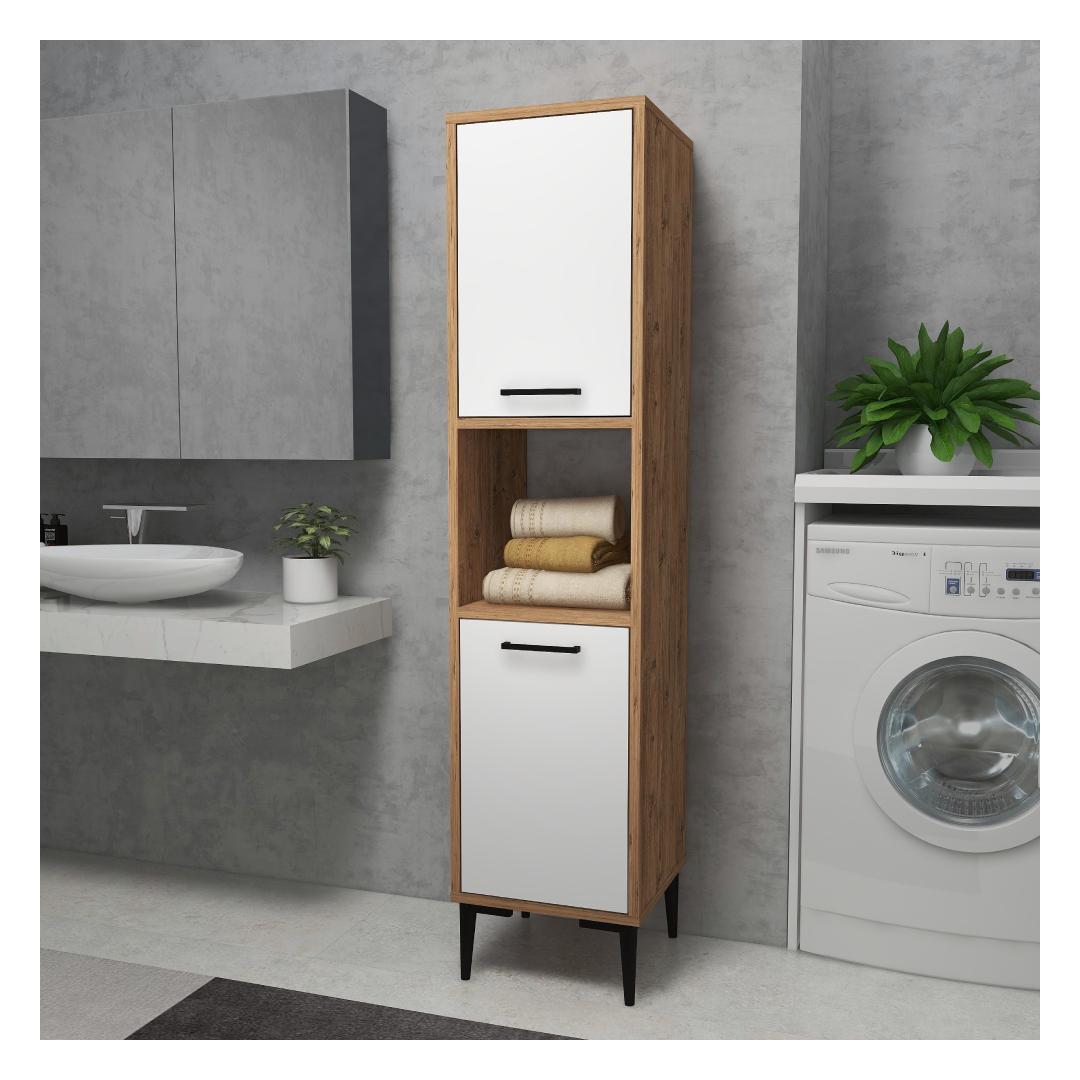 Valmistatud 100% melamiiniga kaetud puitlaastplaadist, see kapp on ehitatud kestma. 18 mm paksus tagab vastupidavuse, samal ajal kui atlantilise männi ja valge värvikombinatsioon lisab teie kodu sisustusele kaasaegse puudutuse. Keskmine riiuli kõrgus 31. 4 cm ja riiuli kõrgus 24 cm pakuvad piisavalt ruumi teie asjadele.