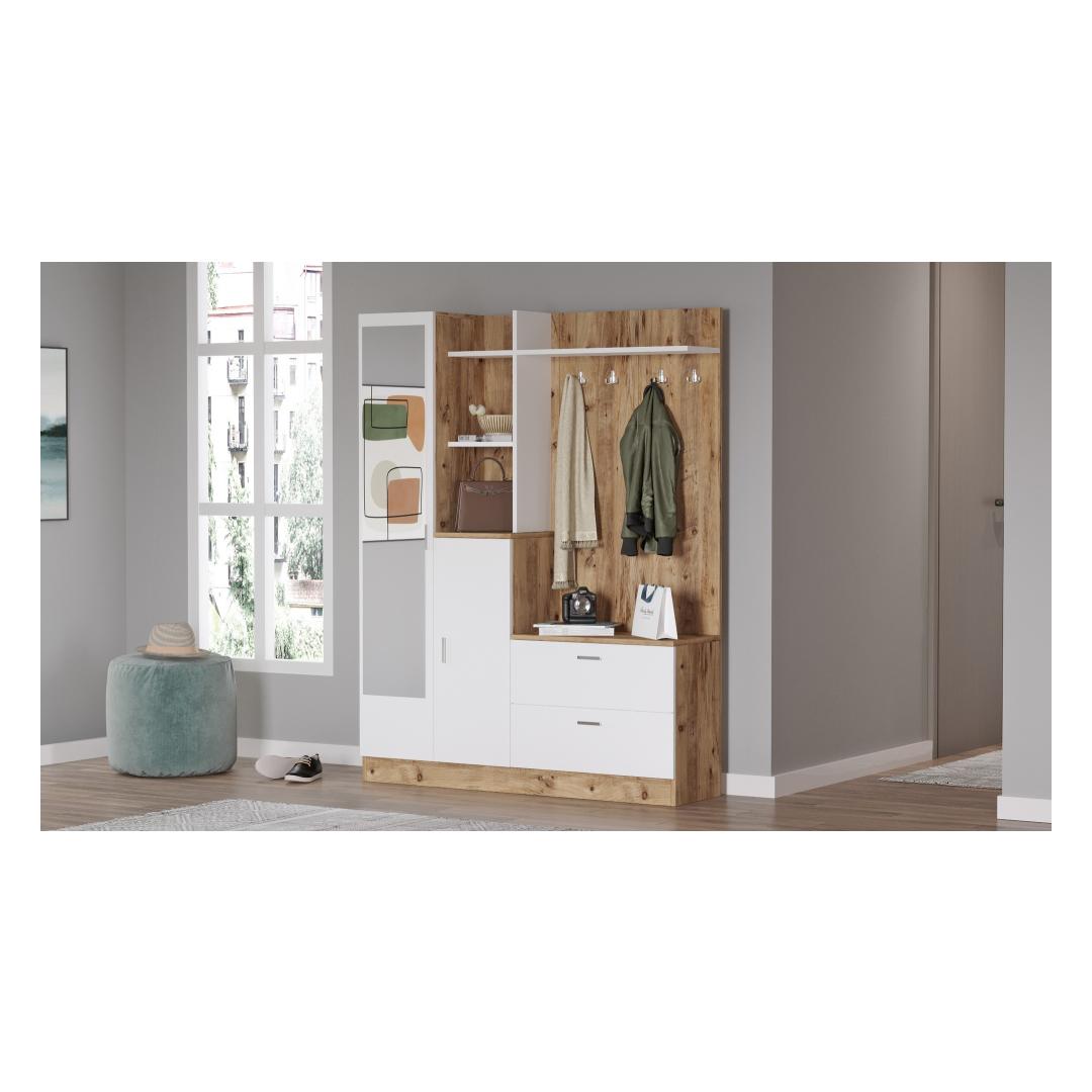 Transformeeri oma koridor elegantselt ja stiilseltTutvustame teile meie peenetundelist koridorikappi, mis on tõeline meistriteos, mis tõstab teie koridori atmosfääri. See ülima täpsusega ja detailidele tähelepanu pöörates valminud stend on loodud muljet avaldama. Võrratu kvaliteet ja vastupidavusValmistatud 100% melamiiniga kaetud puitlaastplaadist, on see saalihoidja valmistatud kestma. Paksus 18 mm tagab tugevuse ja stabiilsuse, samas kui atlandi männi ja valge värv lisab elegantsi.Klassikalise disaini kaasaegne twistOma ühevärvilise ja moodsa uudse kontseptsiooniga ühendab see saalihoidja vaevata ajatu elegantsi ja kaasaegse võlu. Sellest saab kohe teie koridori keskpunkt, mis annab julgelt märku teie laitmatust maitsest. Organiseeri stiilseltSee koridoristend ei väljenda mitte ainult elegantsi, vaid pakub ka rohkelt hoiuruumi. 140 cm laiune, 181. 8cm kõrgus ja 36. 8cm sügavus pakuvad piisavalt ruumi, et hoida oma asju organiseeritult ja käeulatuses. Tehnilised üksikasjad:Tootetüüp: Toode on mõeldud kasutamiseks, et tagada, et see oleks võimalikult lihtne ja et see oleks võimalikult lihtne: Toode: Saalihoidja: SaalihoidjaMaterjal: Materjal: Materjal: Materjal: Materjal: Materjal: Materjal: Materjal: materjal: 100% melamiiniga kaetud puitlaastplaatPaksus: 18mmLaius: 140cmKõrgus: 181. 8cmSügavus: 36. 8cmVärv: Atlandi mänd ja valgeKontseptsioon: Värviline, kaasaegne - uudsusElustage oma koridor meie koridori stendiga ja kogege täiuslik segu funktsionaalsusest ja stiilist. Ärge jätke kasutamata seda võimalust, et muuta oma ruum elegantseks paradiisiks. Tellige kohe ja laske oma koridoril jätta külalistele püsiv mulje. Värv: Atlantic Pine White