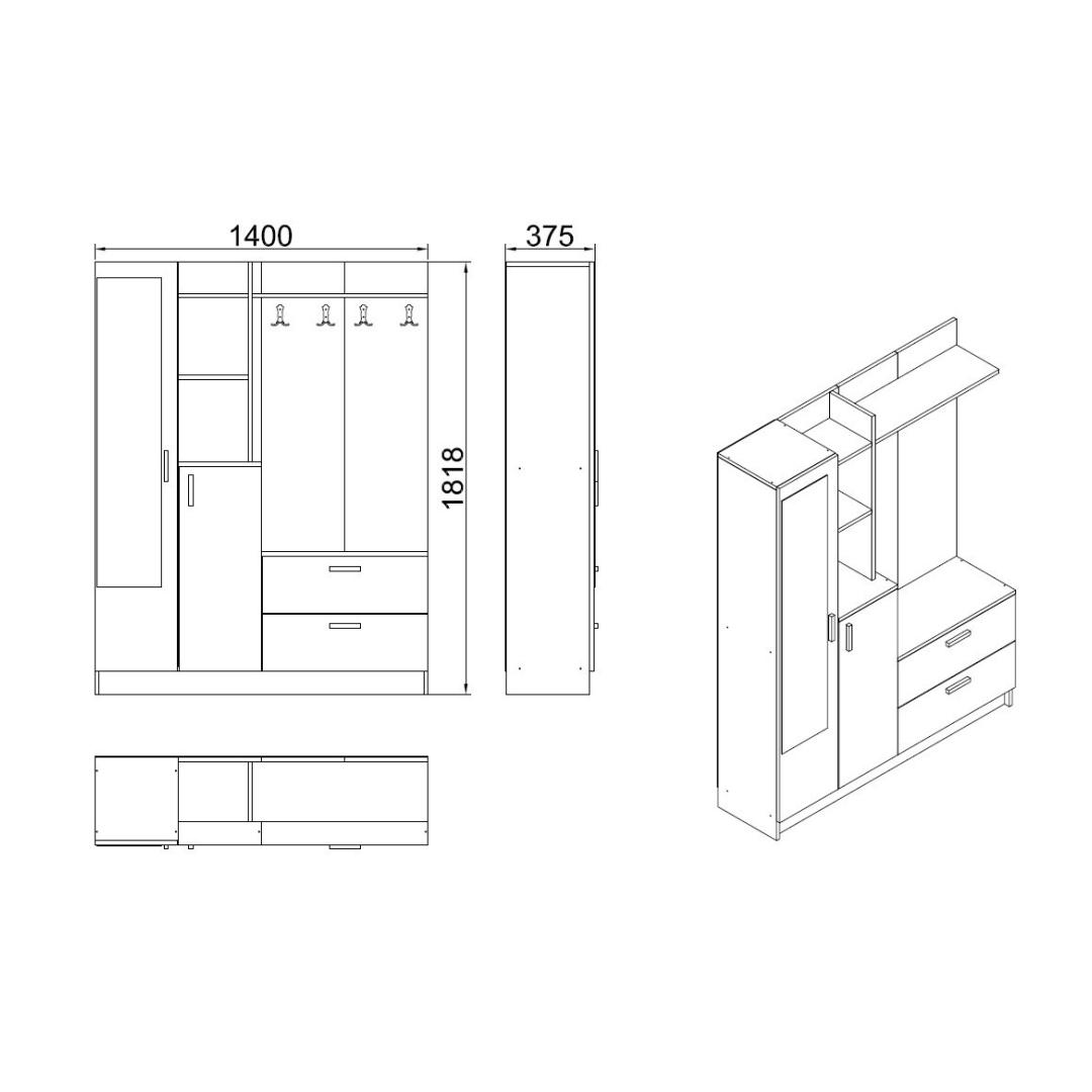 Width: 140 cm Height: 181,8 cm Depth: 36,8 cm